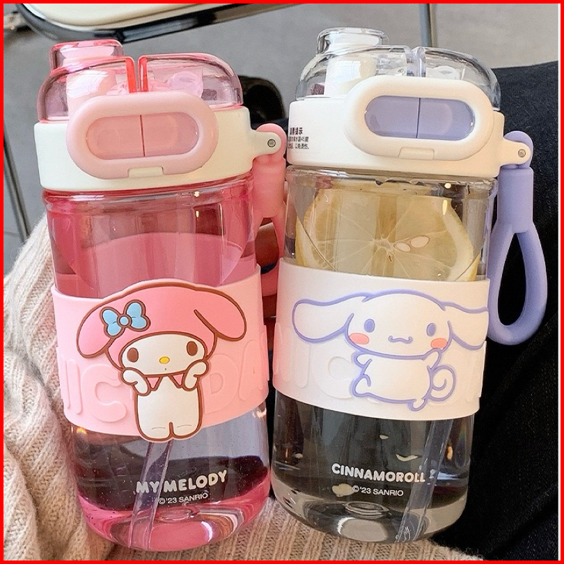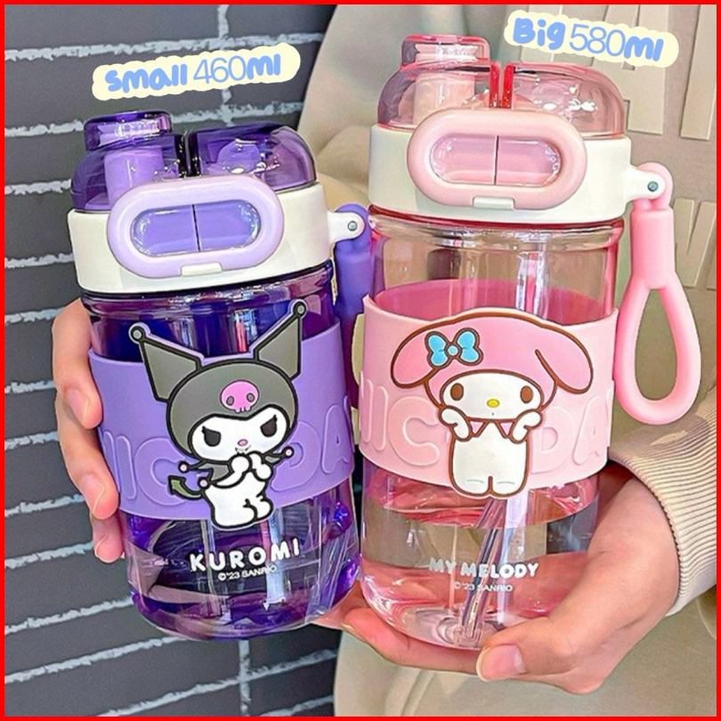 Botol Minum Anak 2in1 Sedot Teguk 580ml Tritan Material Melody Kuromi Cinnamoroll Pochacco 2416