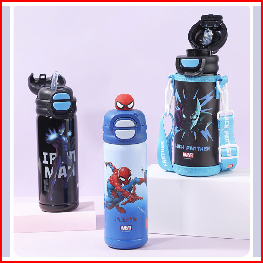 Botol Stainless 316 Anak Sedot Teguk 500ml Karakter Spiderman Ironman Panther