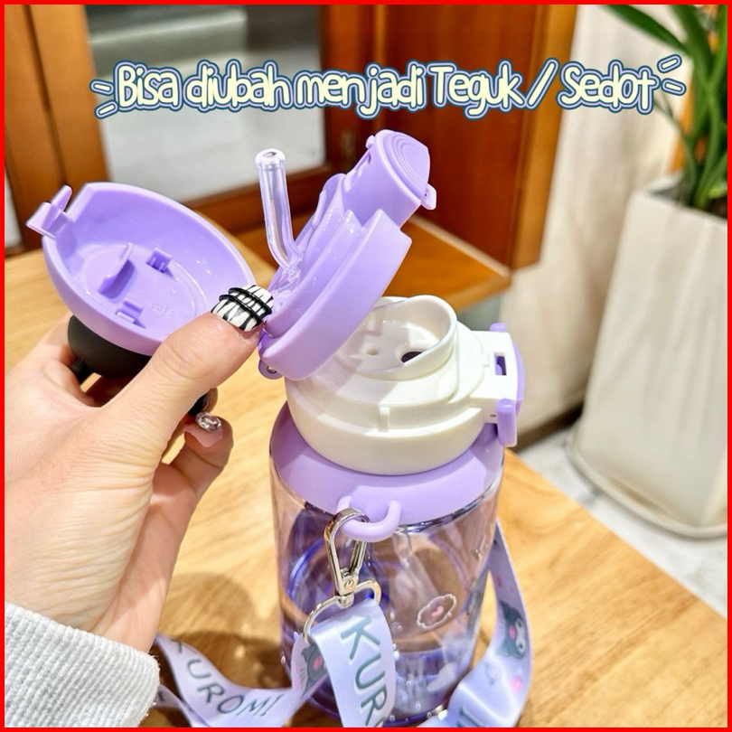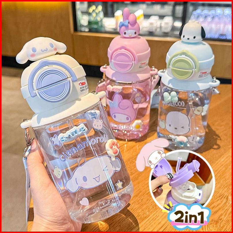 Botol Minum Anak 2in1 Sedot Teguk 650ml Tritan Material 3d Head Melody Kuromi Cinnamoroll Pochacco 2442