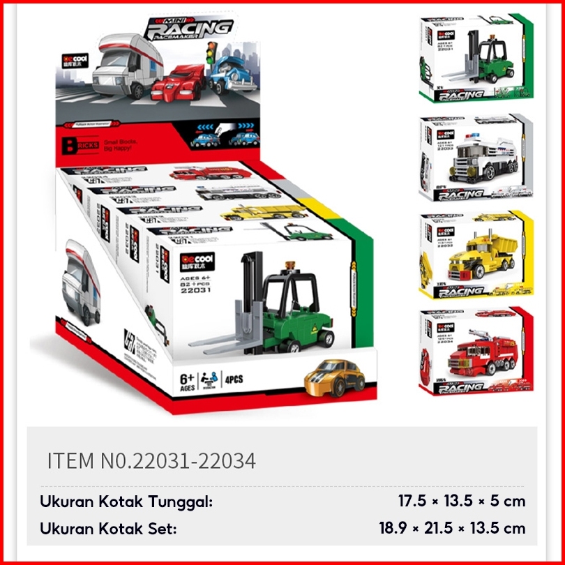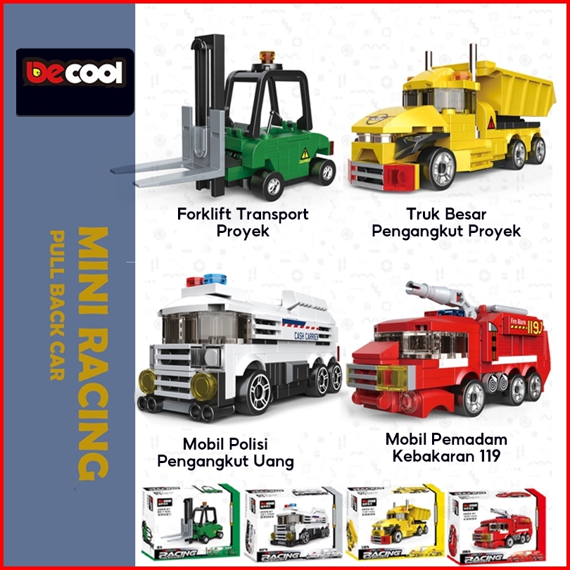 Ohsome Decool Mini Pull Back Car 22031-22034 Block Mainan Rakit Brick Blok Susun Mobil 3d Diy - Random