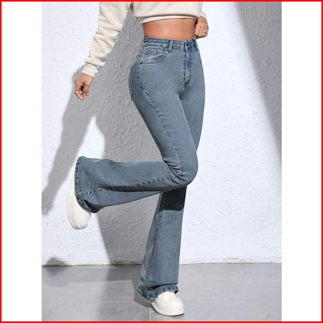 Celana Cutbray Jeans Bahan Stretch Melar Model Fit And Flare Pants Pinggang Highwaist Bahan Tebal Melar Panjang 100cm Ko