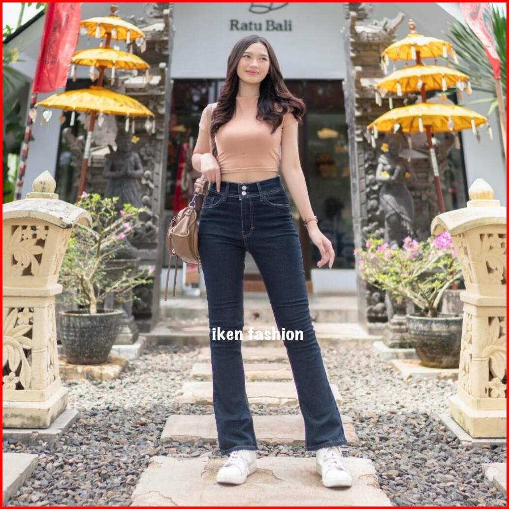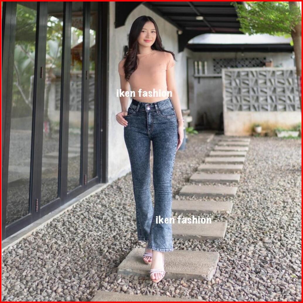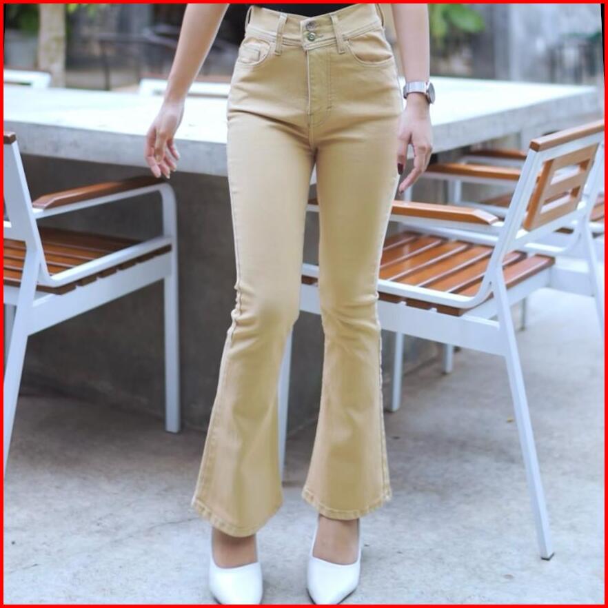 Hw Cutbray Jeans Wanita Stretch Kekinian - Cutbray Flared Stretch Premium 2 Button Edition