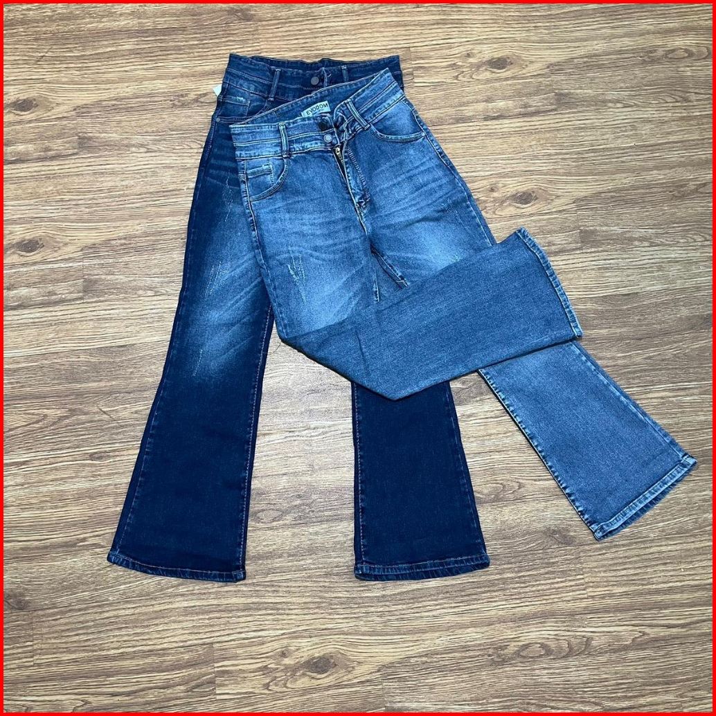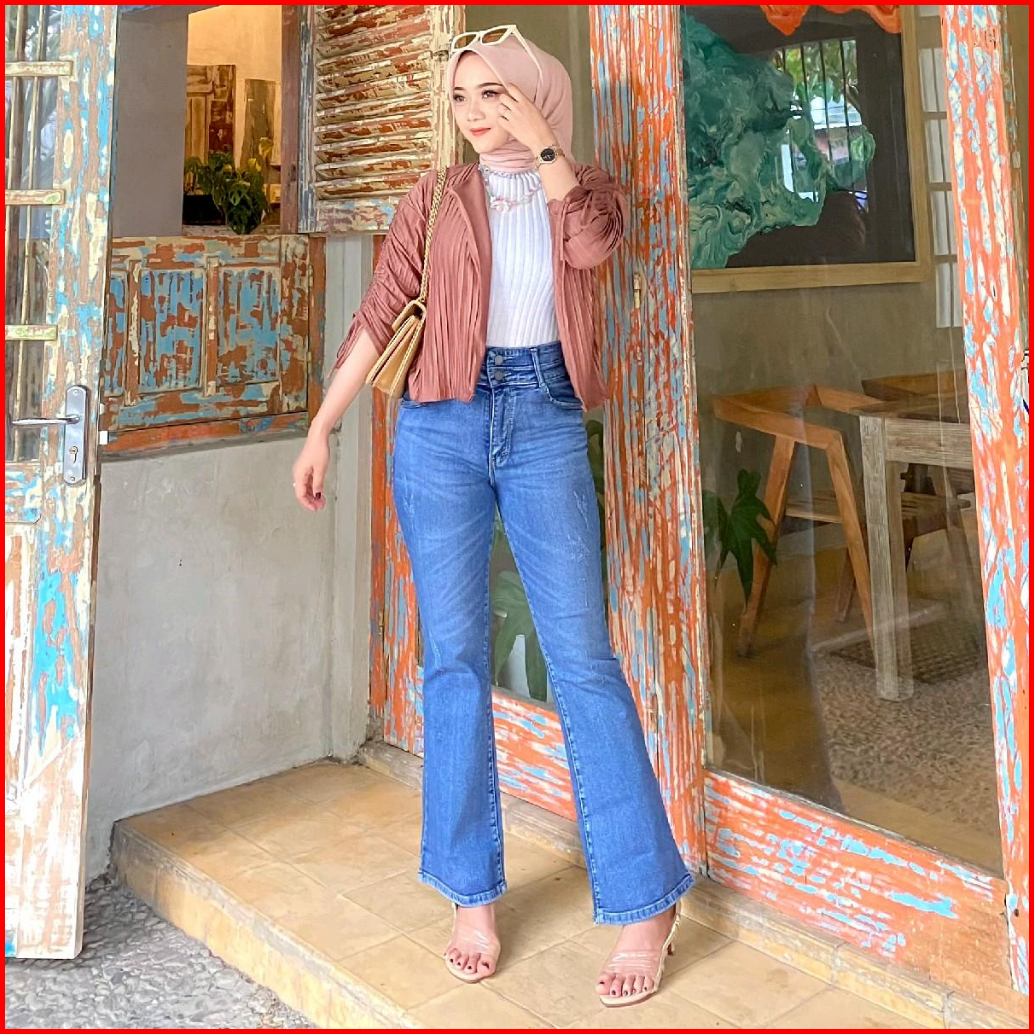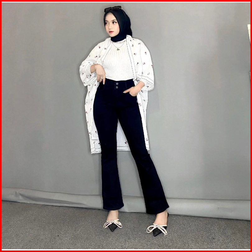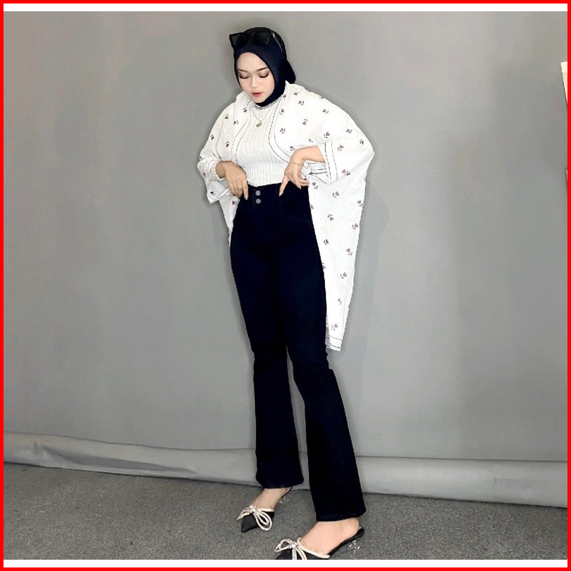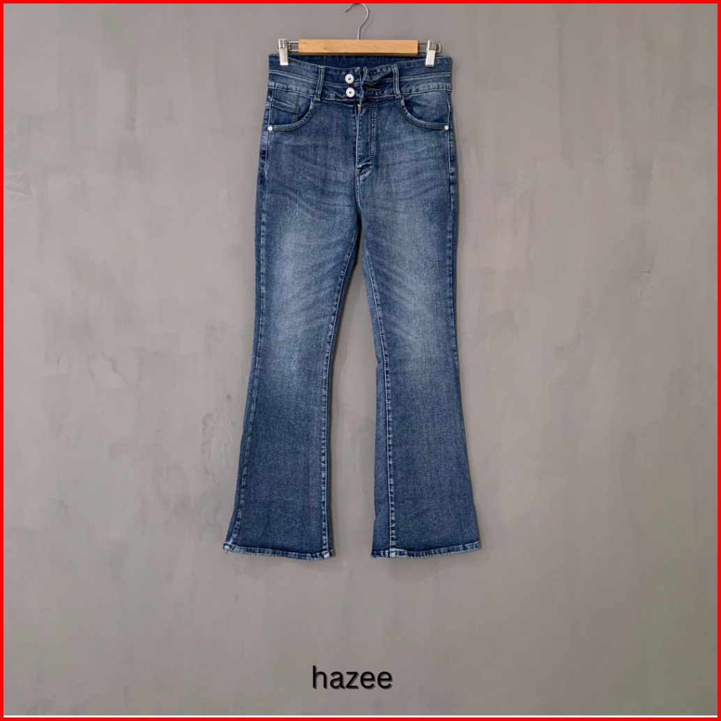 Hazee - Emily Celana Jeans Panjang Wanita Hightwaist Cutbray Bahan Melar Kancing 2 Bahan Nyaman