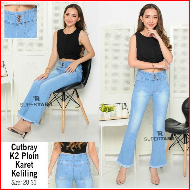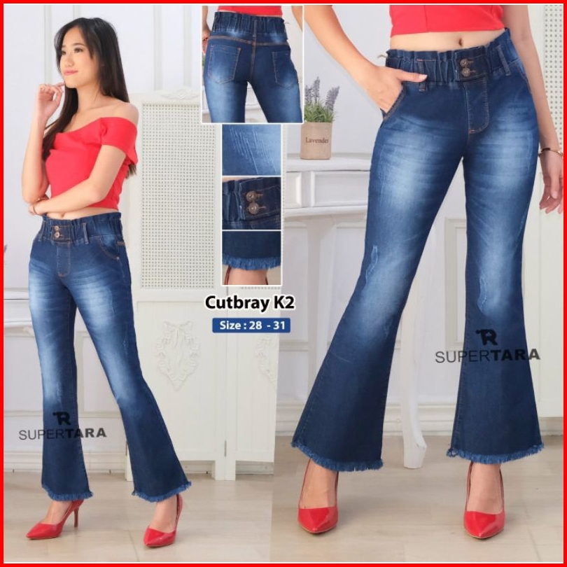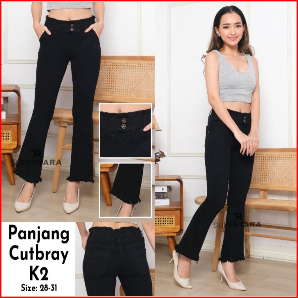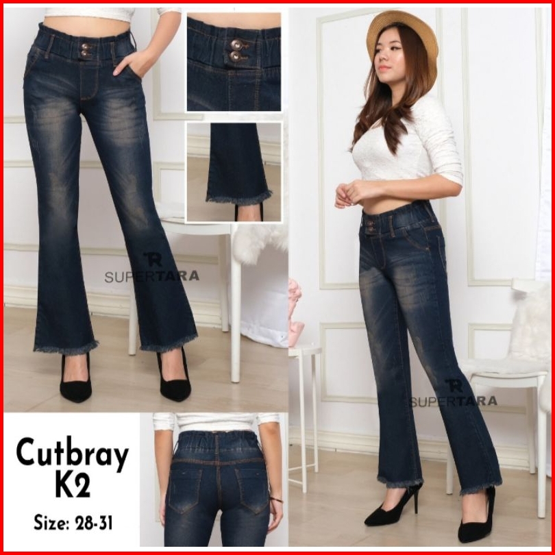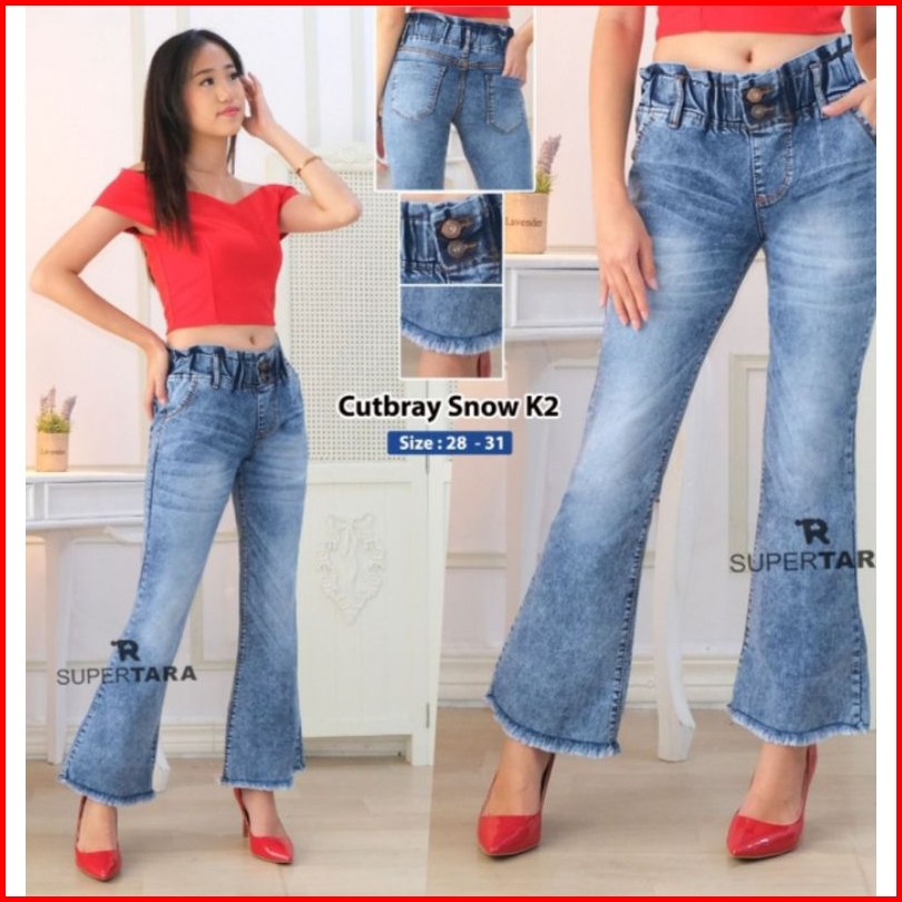 Tr16 - Celana Jeans Wanita Cutbray Kancing 2 Size 28-31 Street Kaki Rawis