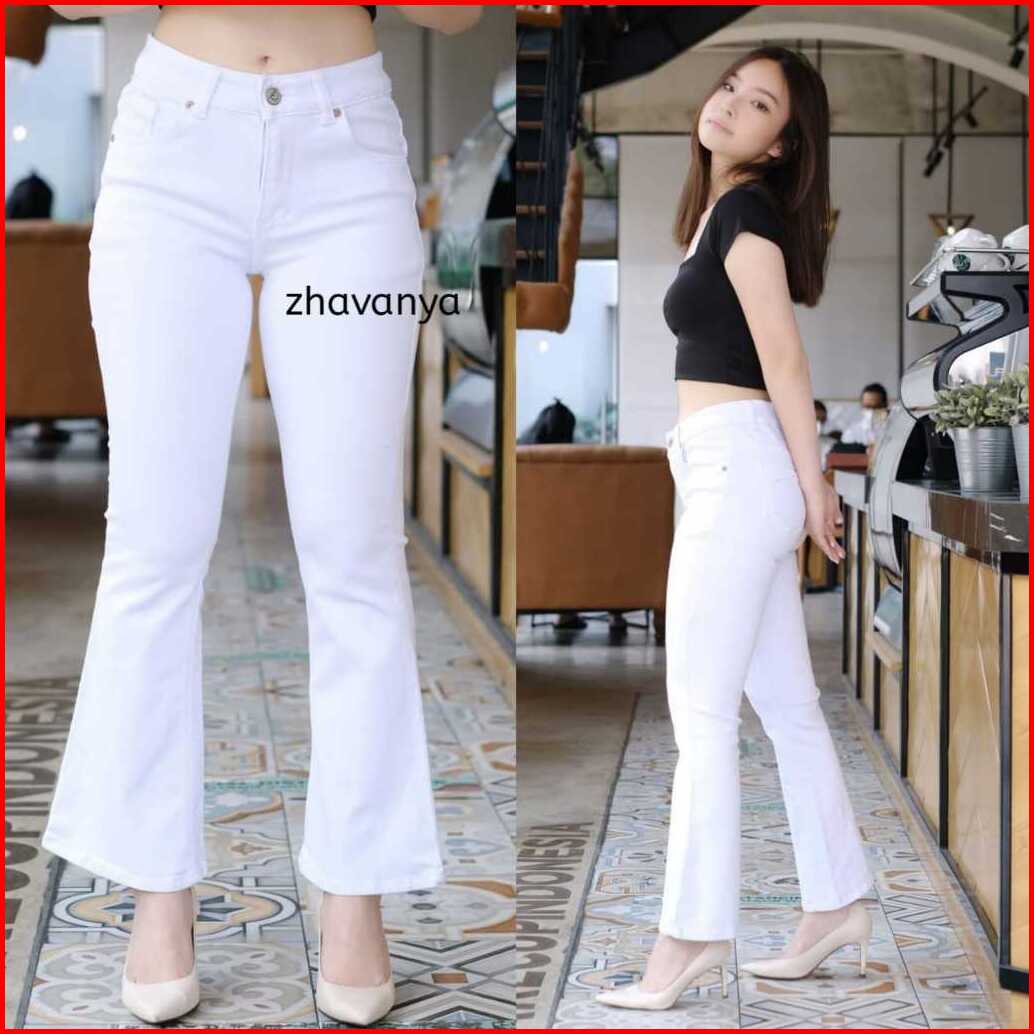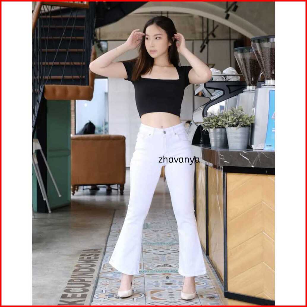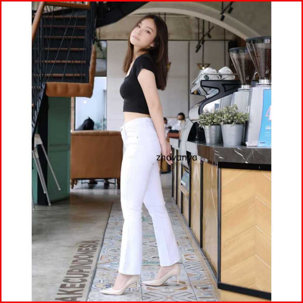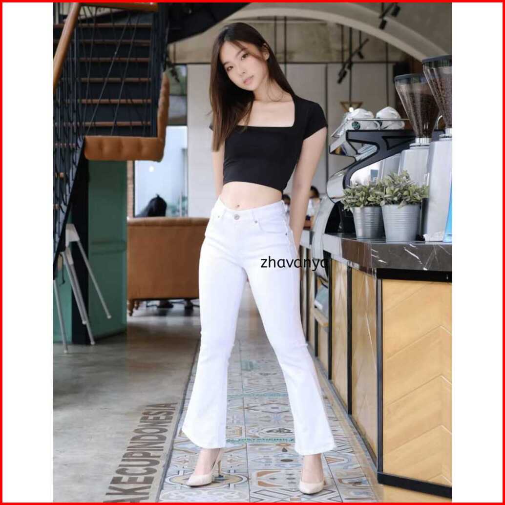 Celana Jeans Cutbray Lipat Polos Putih Wanita-celana Panjang Jeans-celana Jeans Wanita Terbaru-jeans Cutbray Wanita