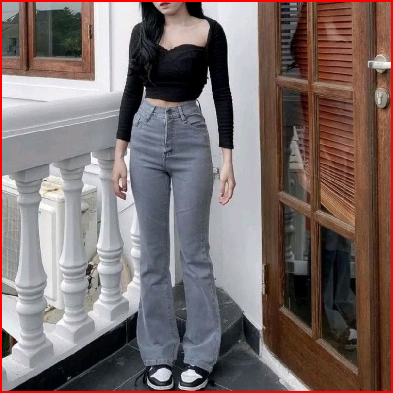 Highwaist Loose Cutbray Stretch Wanita Hightwaist Cutbray Jeans Kekinian Style Korean 100 Stretch
