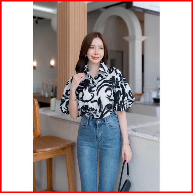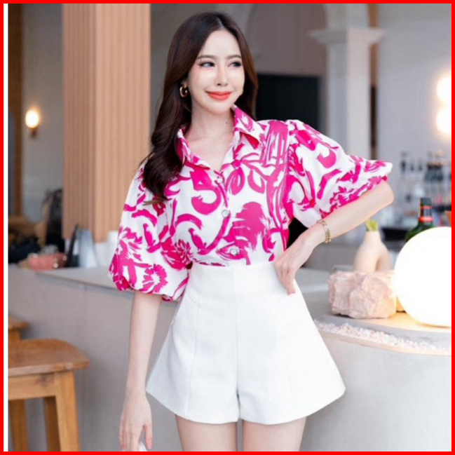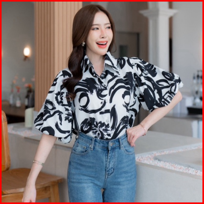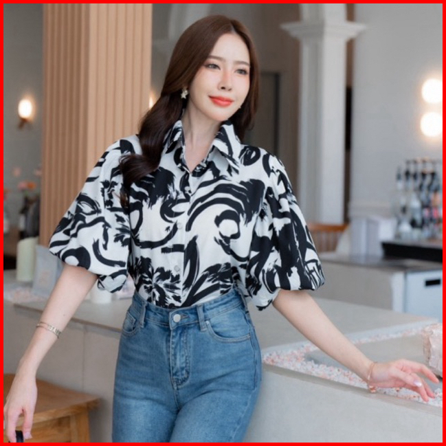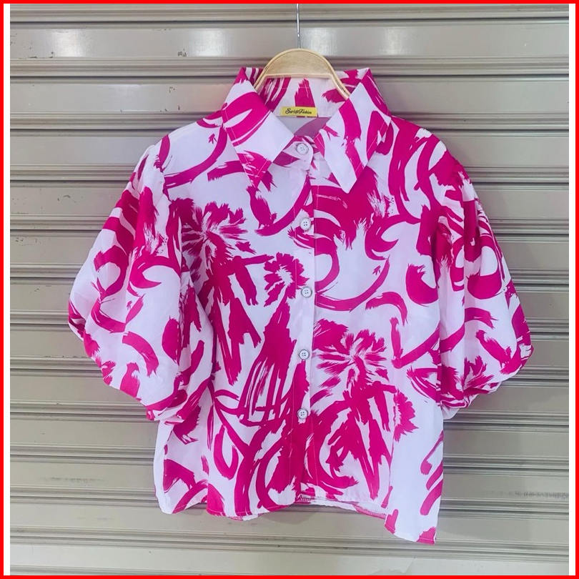 Kemeja Sketchy Colorful Lengan Balon Bangkok