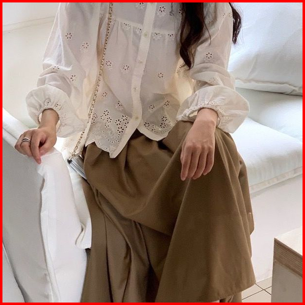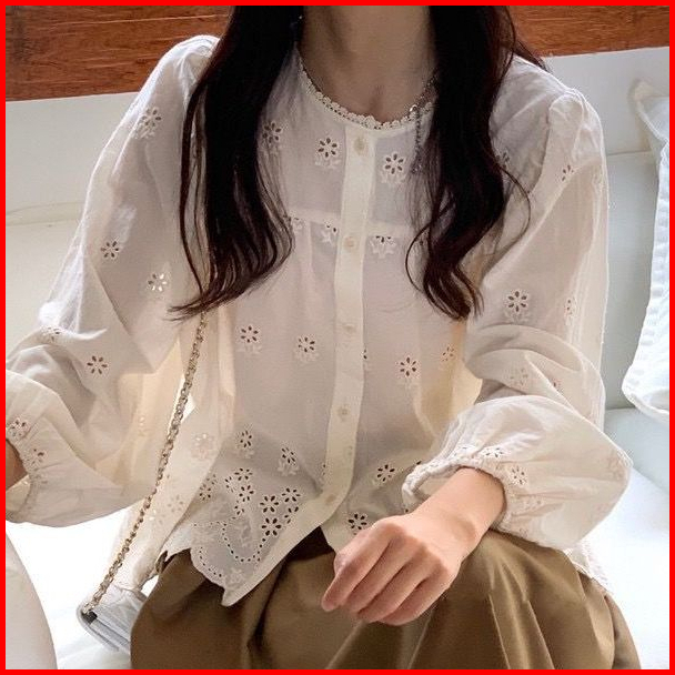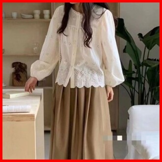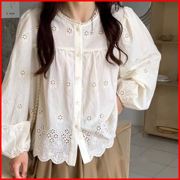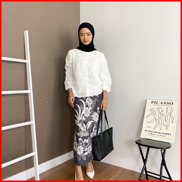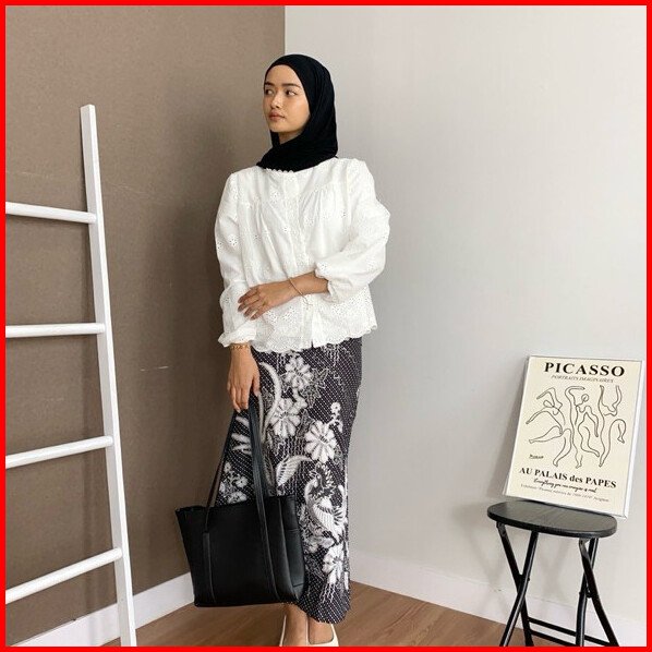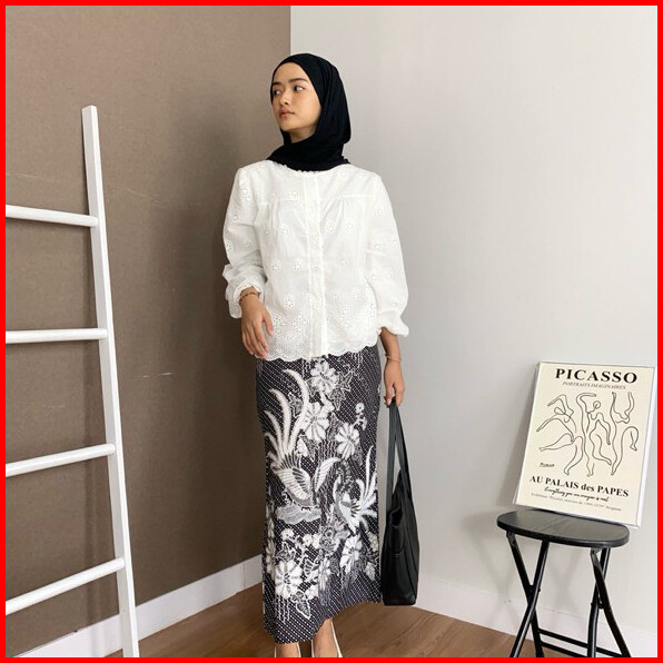 Kiwi Calla Blouse Atasan Wanita Lengan Panjang Balon Renda Motif Bunga
