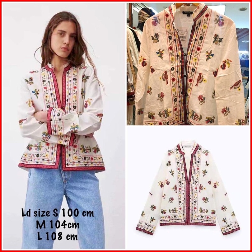 Kemeja Blouse Kardigan Atasan Zr Wanita Lengan Panjang Katun Bordir Import Bangkok