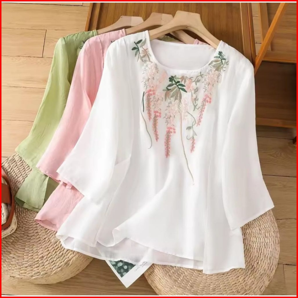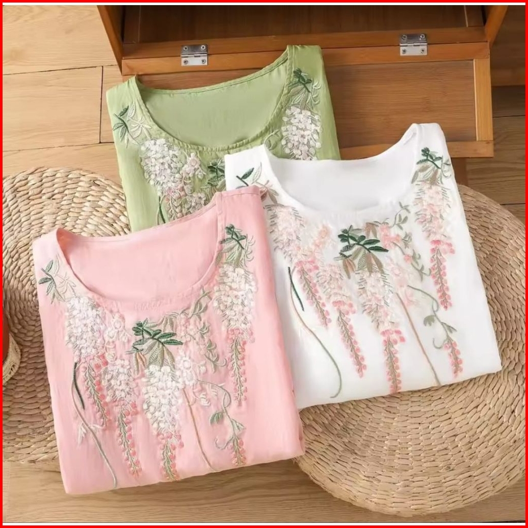 Baju Blouse Import Bordir Katun Ukuran M-4xl