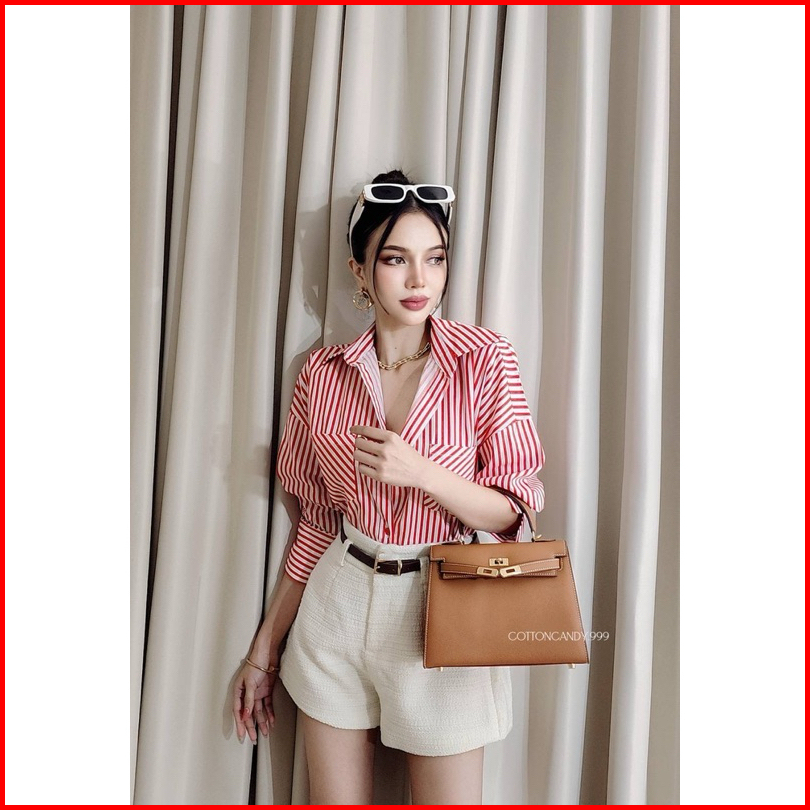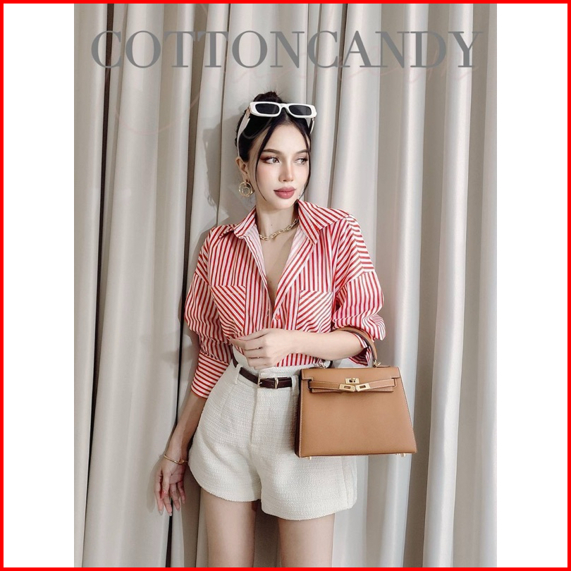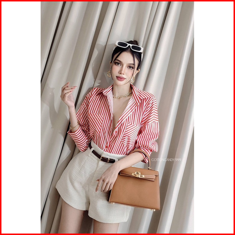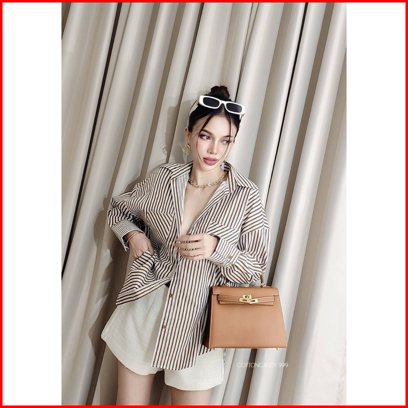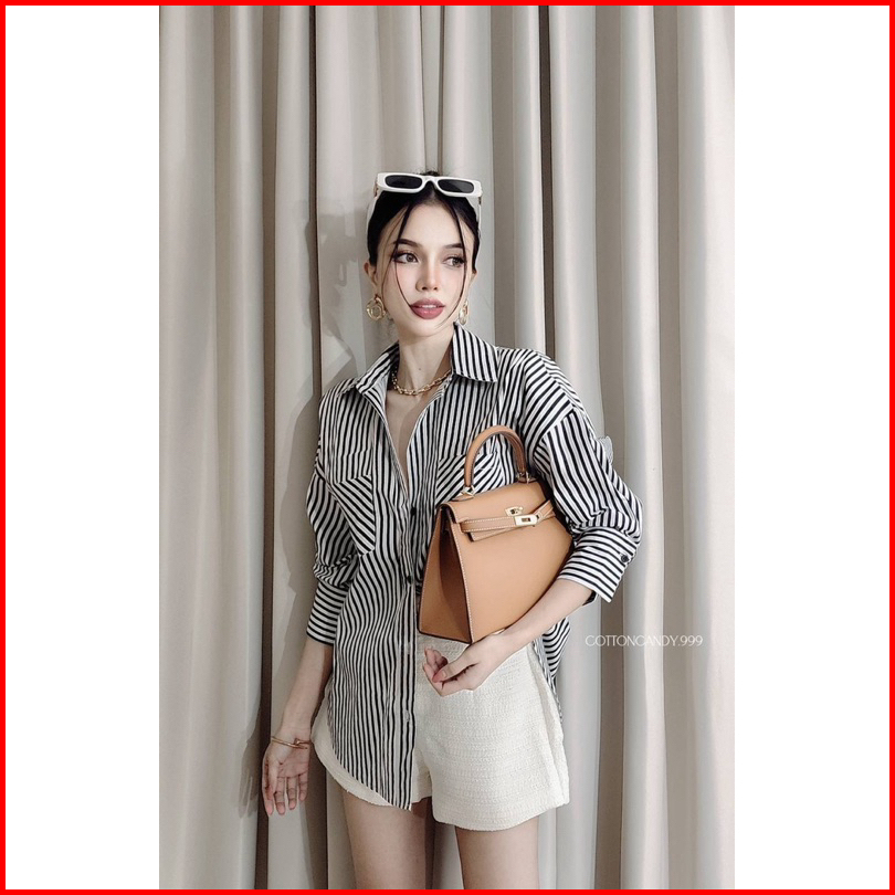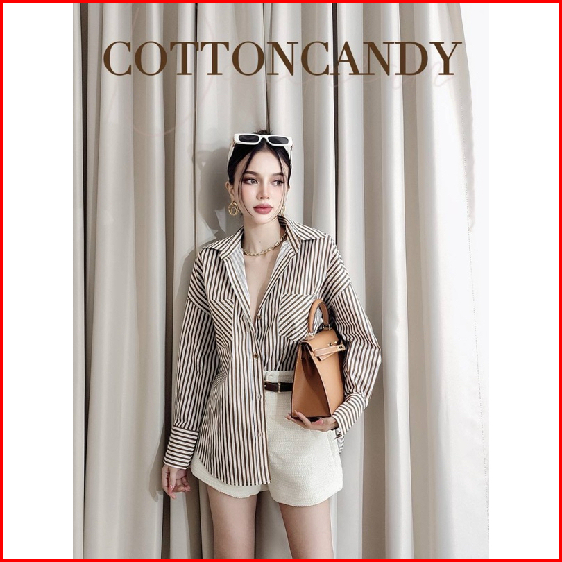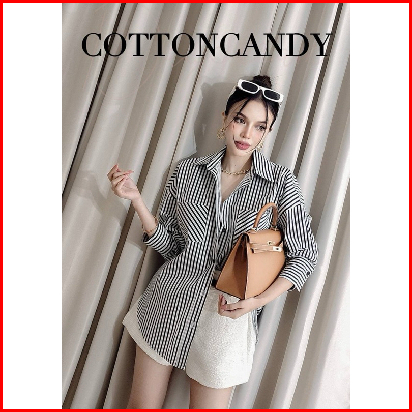 Yovie Shirt Basic Stripe Oversize Shirt Long Sleeve Cotton Candy Import Bangkok