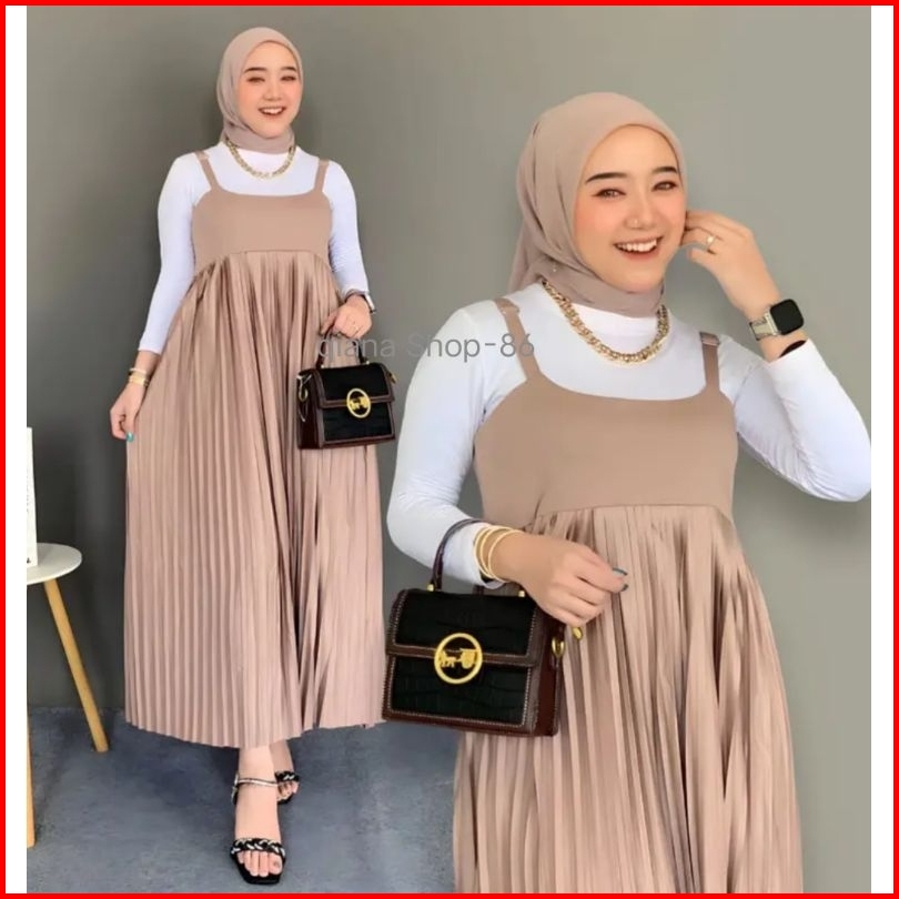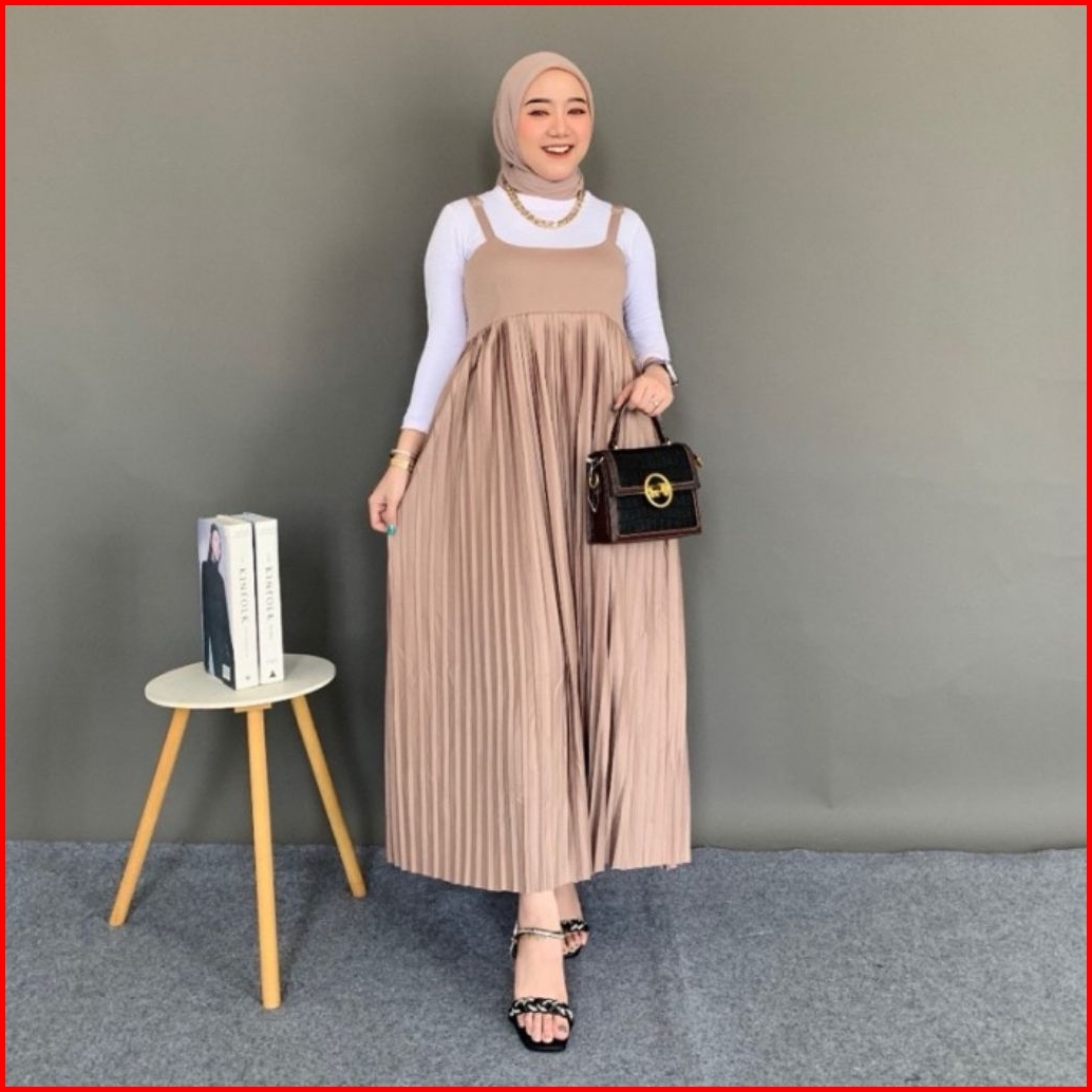 Overall Plisket Wanita Elegan Dress Plisket Premium Yang Nyaman Dan Stylish