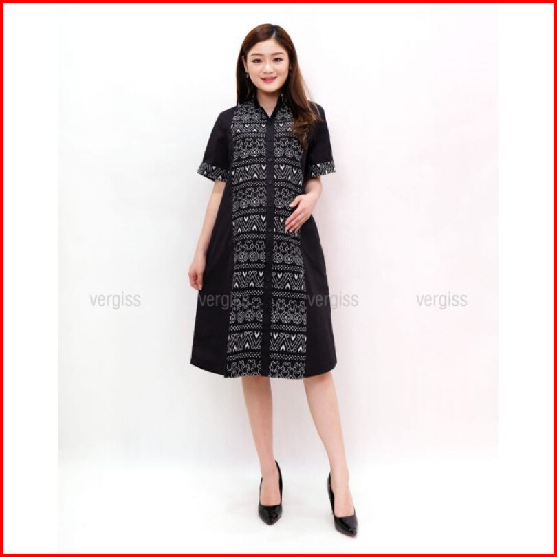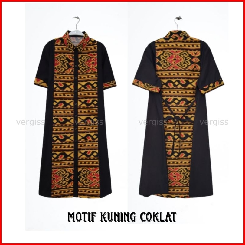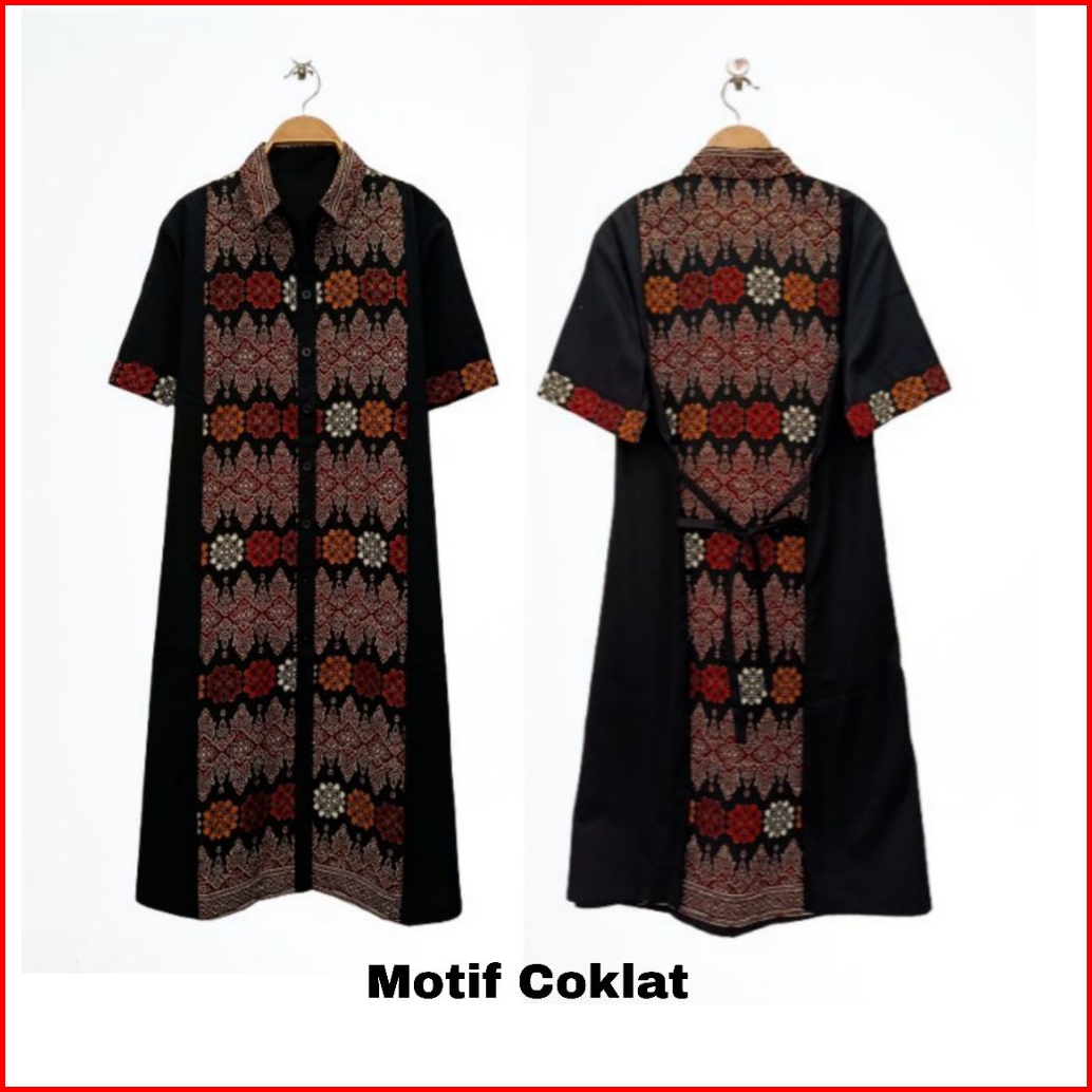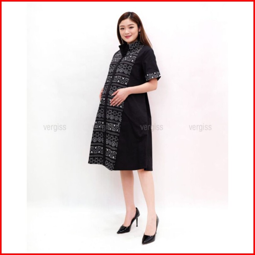 Dress Hamil Batik Katun Kemeja Kancing Depan