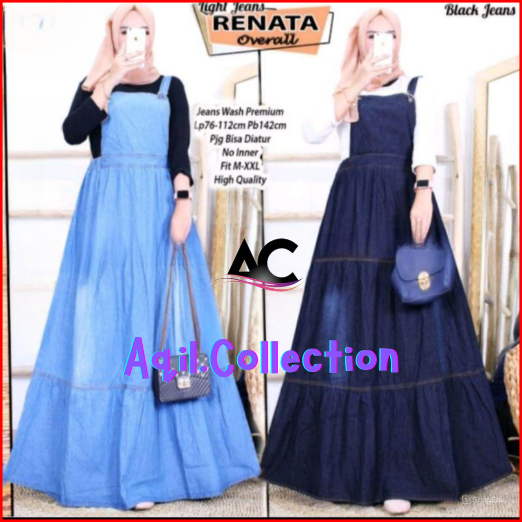 Aqil Collection Overall Wanita Jeans Dress Jeans Overall Wanita Overall Jeans Cargo Dress Jeans Terbaru Wanita Kekinian