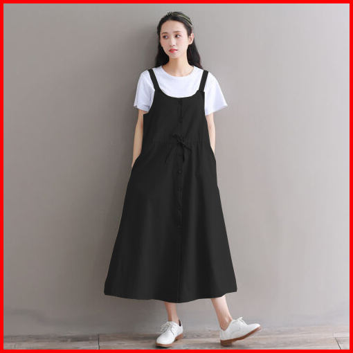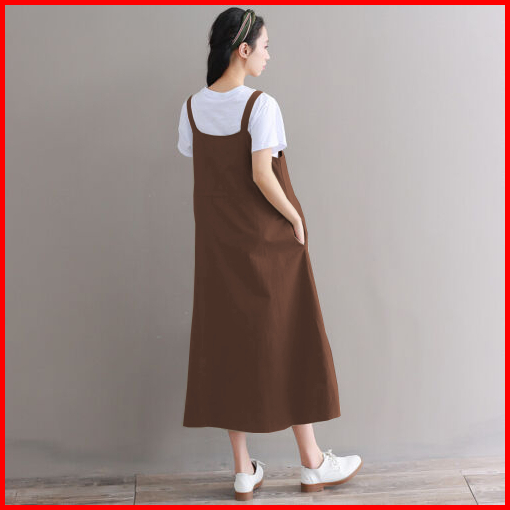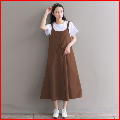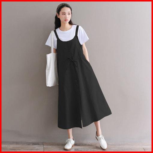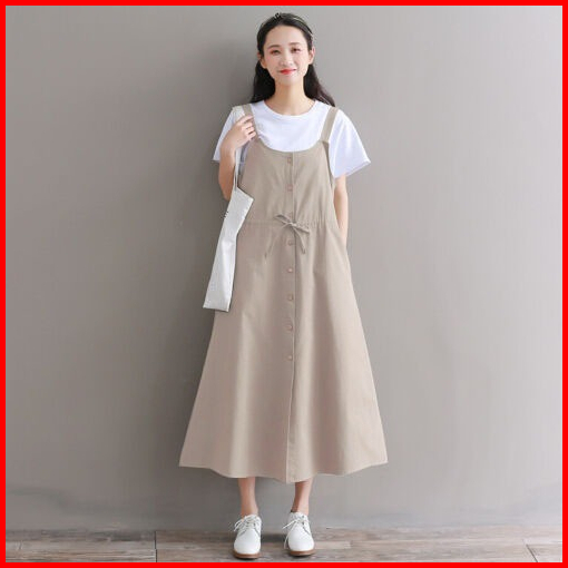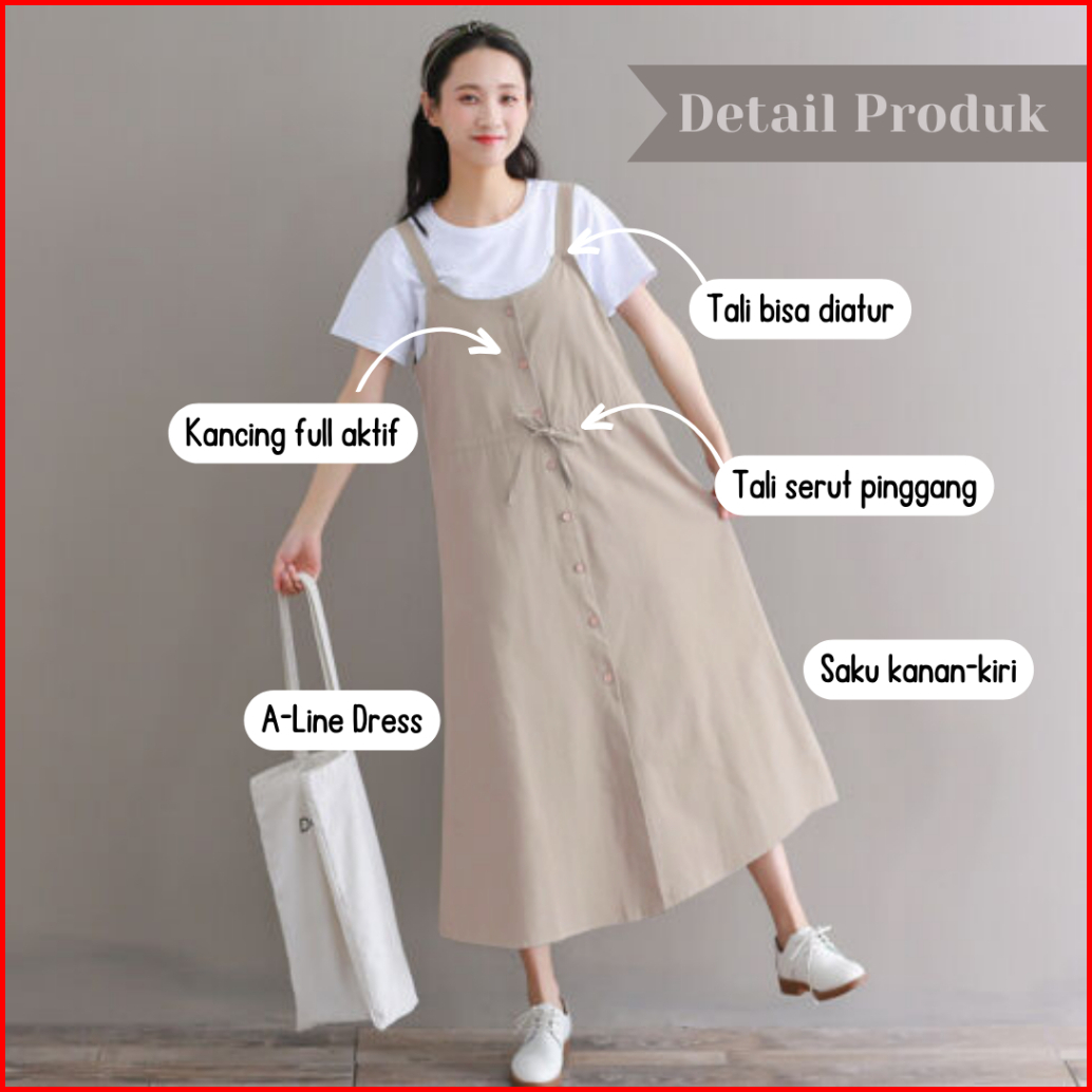 Aela Overall Dress Korean Style Jumbo Bahan Katun Cigaret Polos Simple Overall 7 8 Busui Frendly