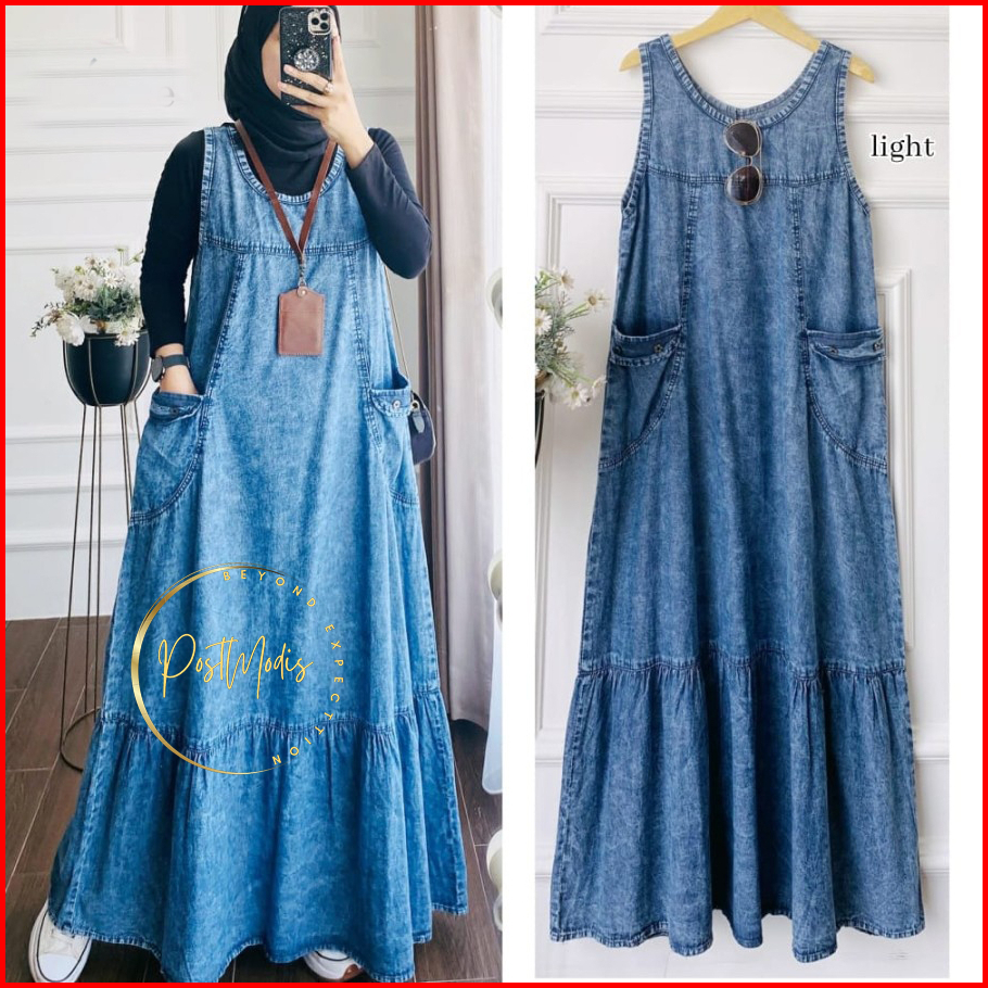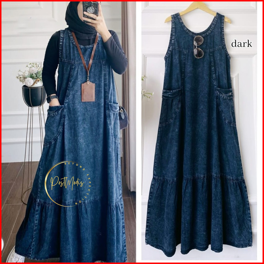 Olla Overall Soft Jeans Kodok Panjang Muslim Snow Blue Dan Snow Black Rcs