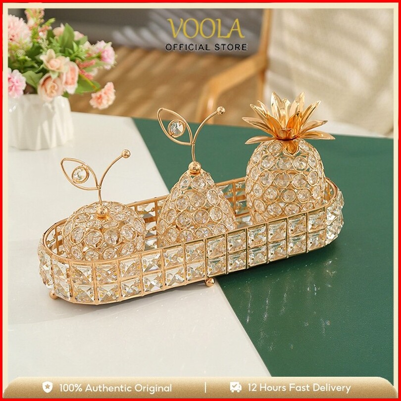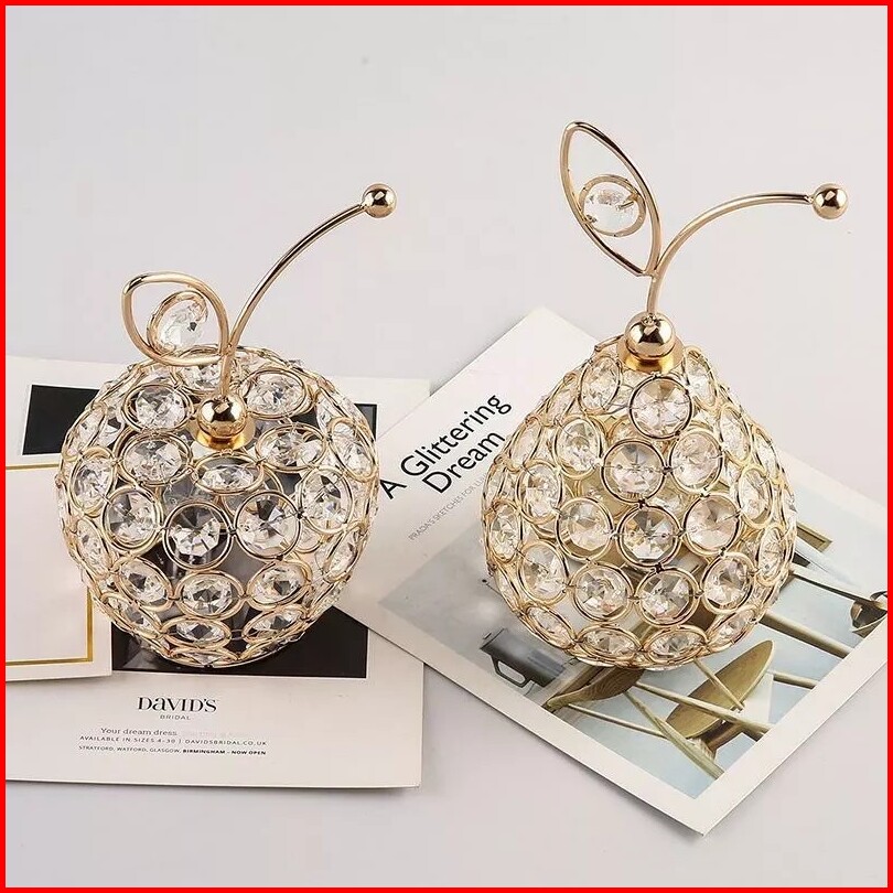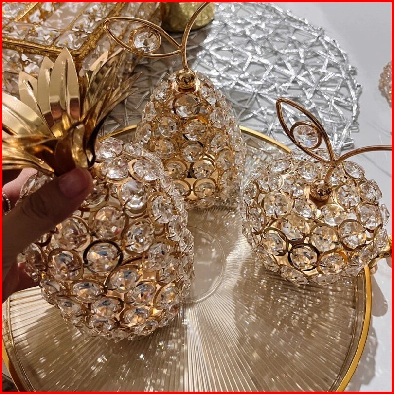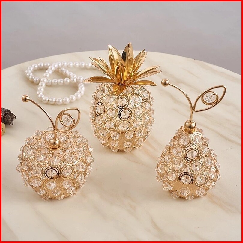 Voola 3pcs Crystal Nanas Pear Apple Pajangan Kristal Mewah Pajangan Mewah Swarlovsky Pir Nanas Apel Ornamen Kristal Buah