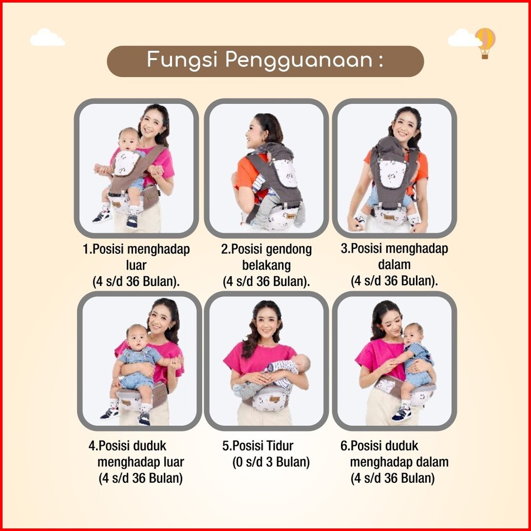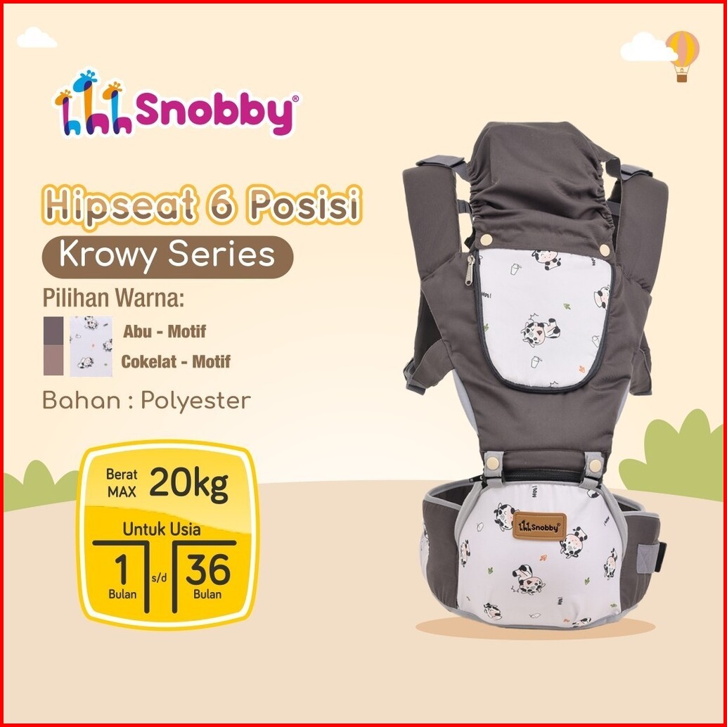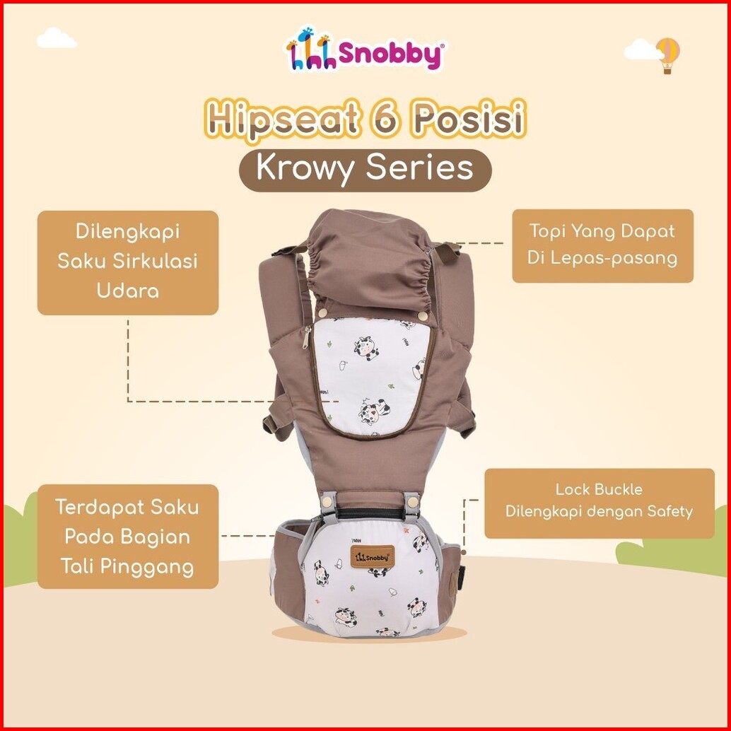 Snobby Gendongan Hipseat Bayi 6 Posisi Dan Saku Sirkulasi Krowy Series