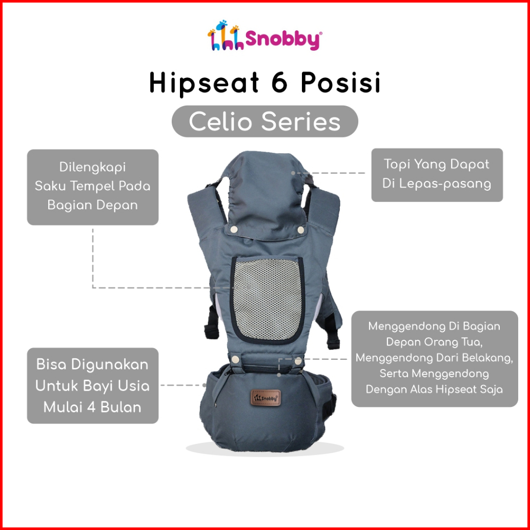 Snobby Gendongan Bayi Hipseat 6 Posisi Saku Jaring Celio
