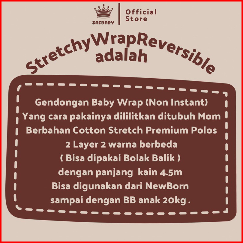Zafbaby Stretchy Wrap Reversible Premium Gendongan Bayi Mshape Non