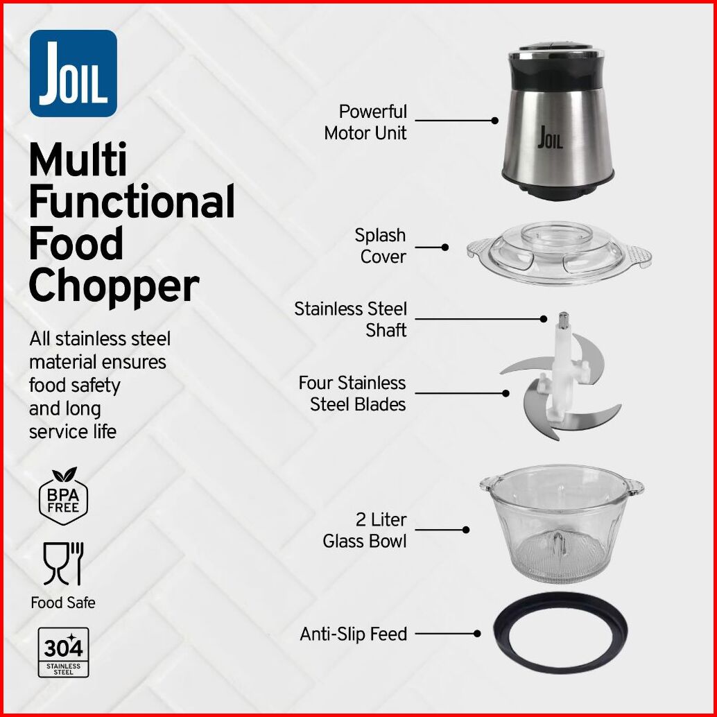 Promo Joil Food Chopper 2l Penggiling Makanan Pisau Stainless Steel Multifungsi Ch1