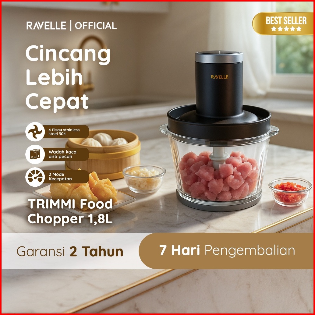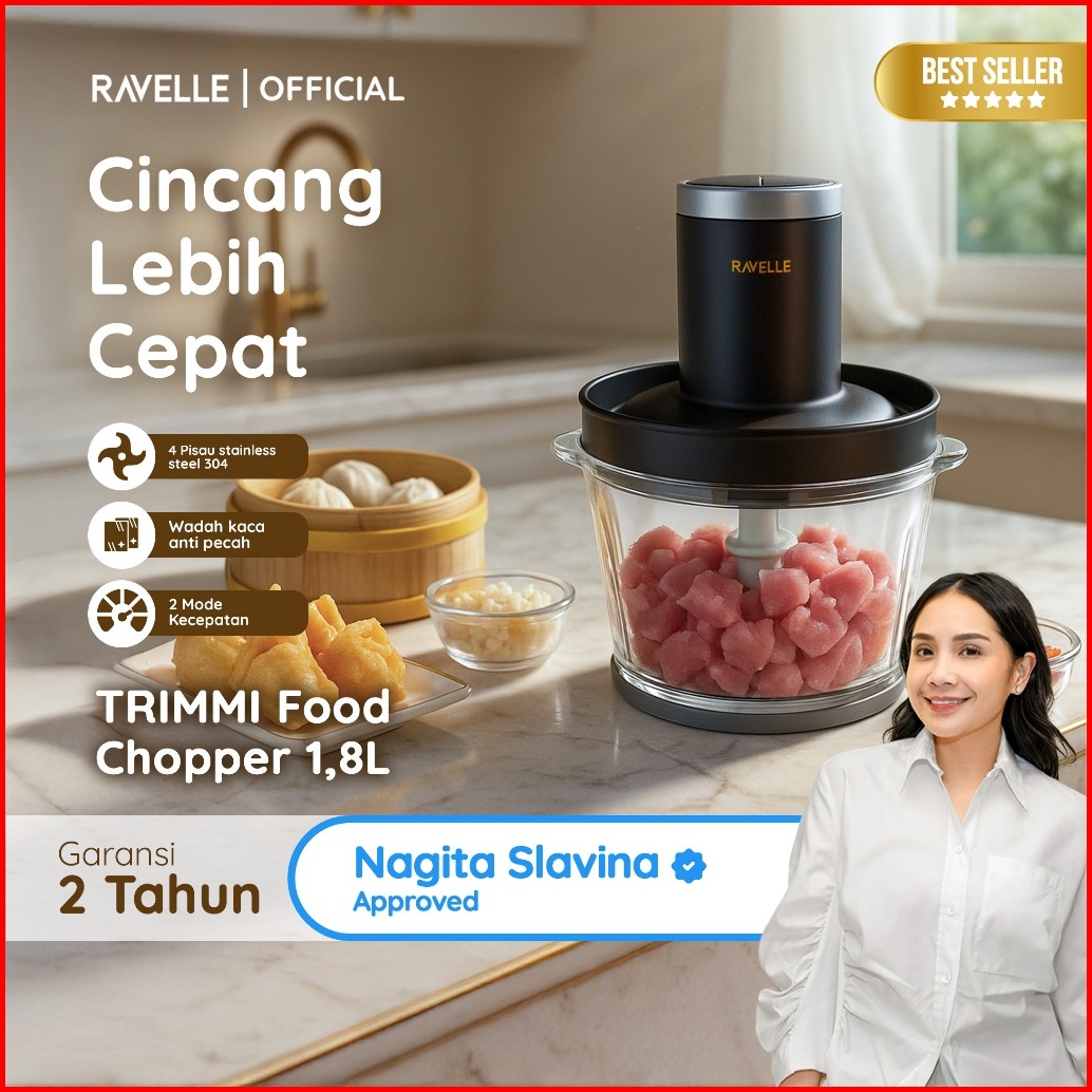 Ravelle Trimmi Premium Food Chopper 1 8l - Penghalus Bumbu Dan Penggiling Daging