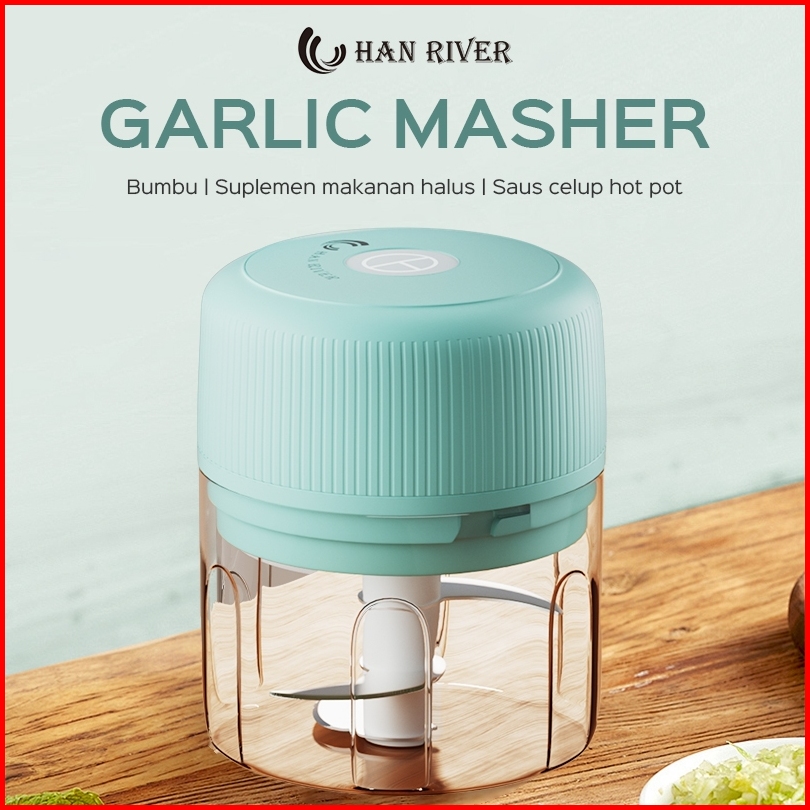 Han River Chopper Mini Portable 250ml Chopper Bawang Putih 30w Listrik 800mah Blender Bumbu Dapur