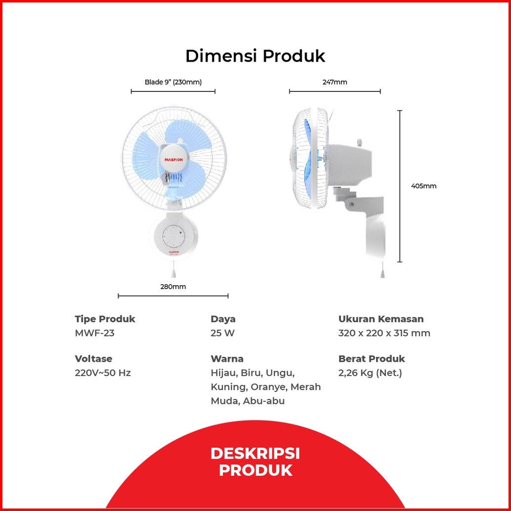 Maspion Wall Fan Kipas Angin Dinding 9 Inch Mwf-23