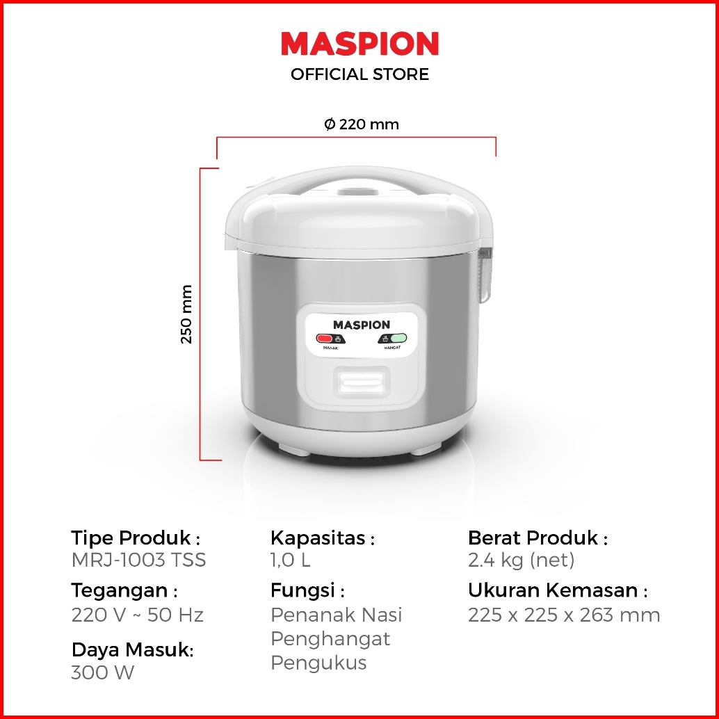 Maspion Rice Cooker Magic Com 1 Liter Mrj-1003 Tss