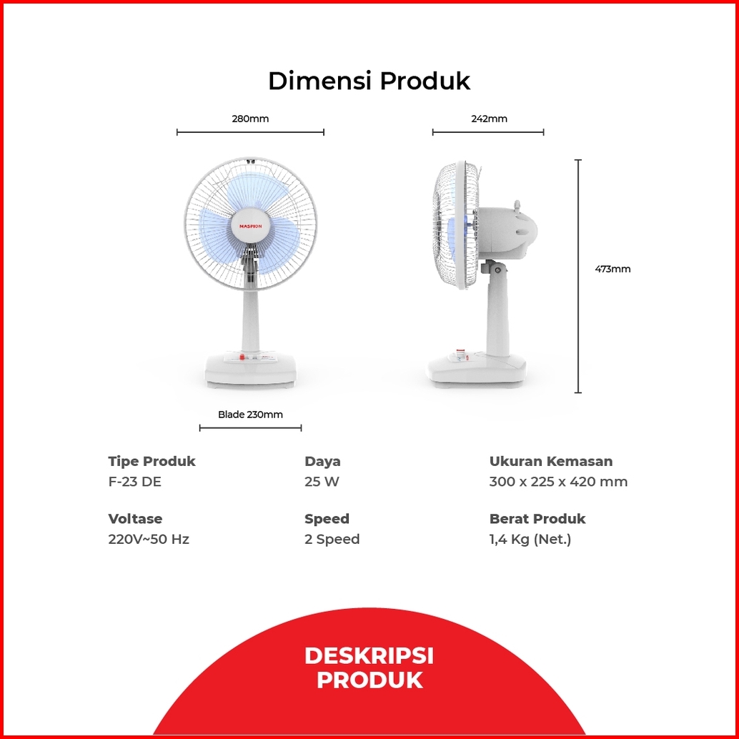 Maspion Kipas Angin Meja Desk Fan 9 Inch F-23 De