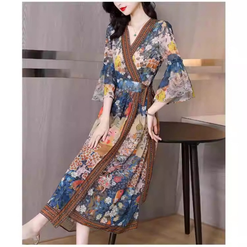 BAJU MUSLIM WANITA DEWASA / BAJU LEBARAN 2025 / PAKAIAN MUSLIM WANITA TREND / TM 12670# VELUTINA WRAP MIDI DRESS IMPORT
