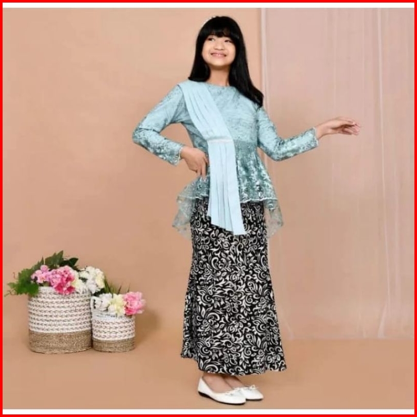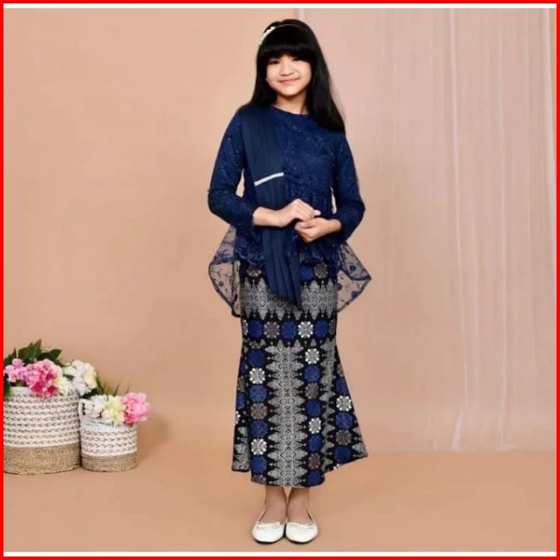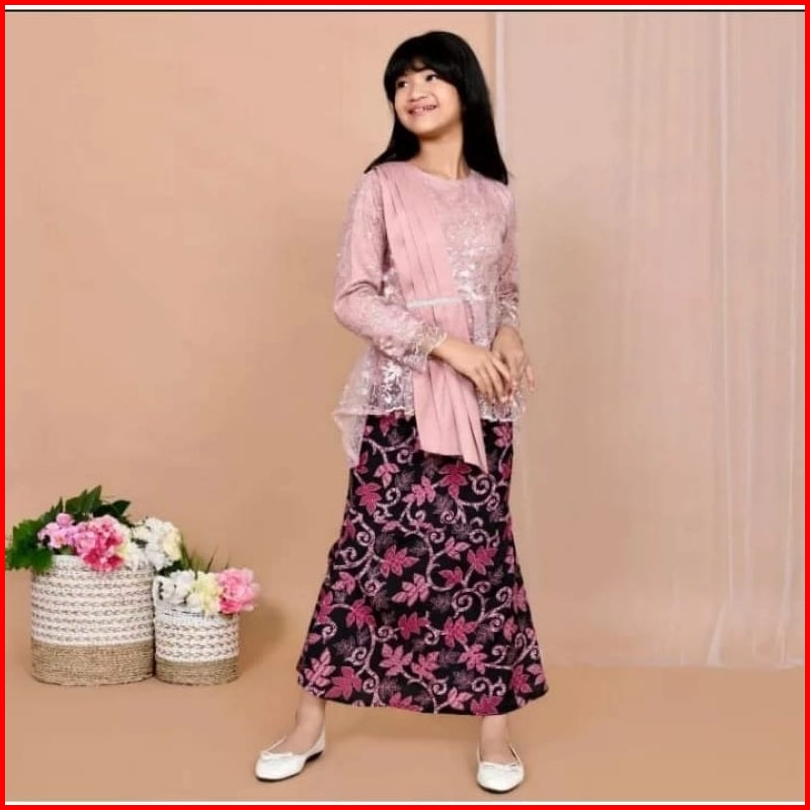 One Set Kebaya Anak Perempua Slendang Kebaya Anak Wisuda Usia 5-12 Tahun