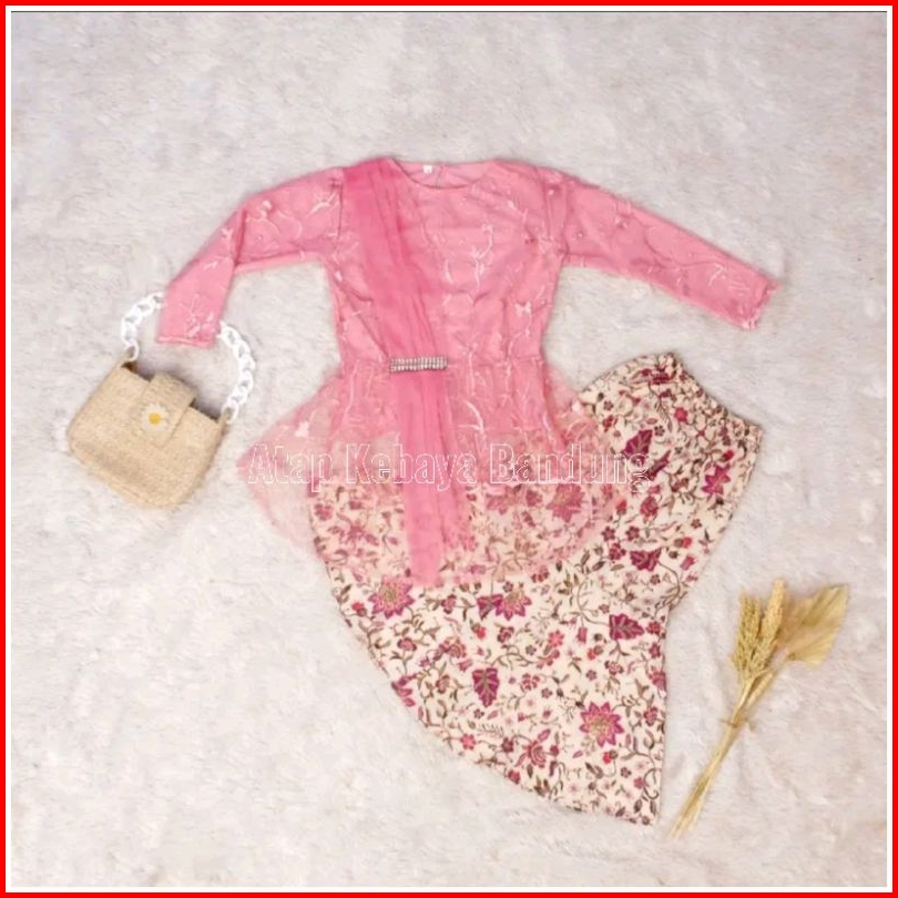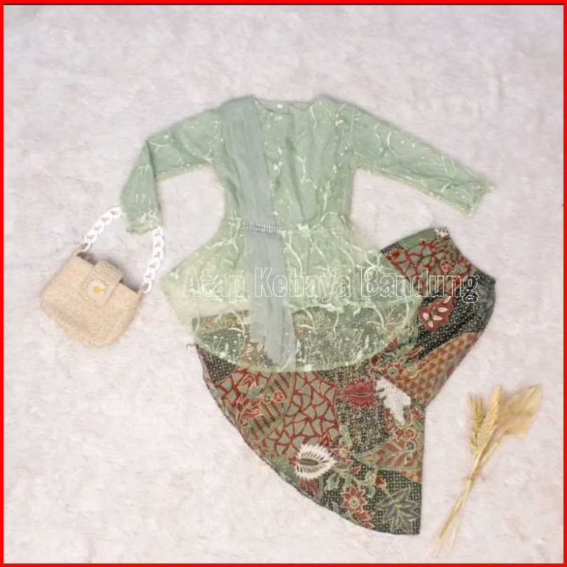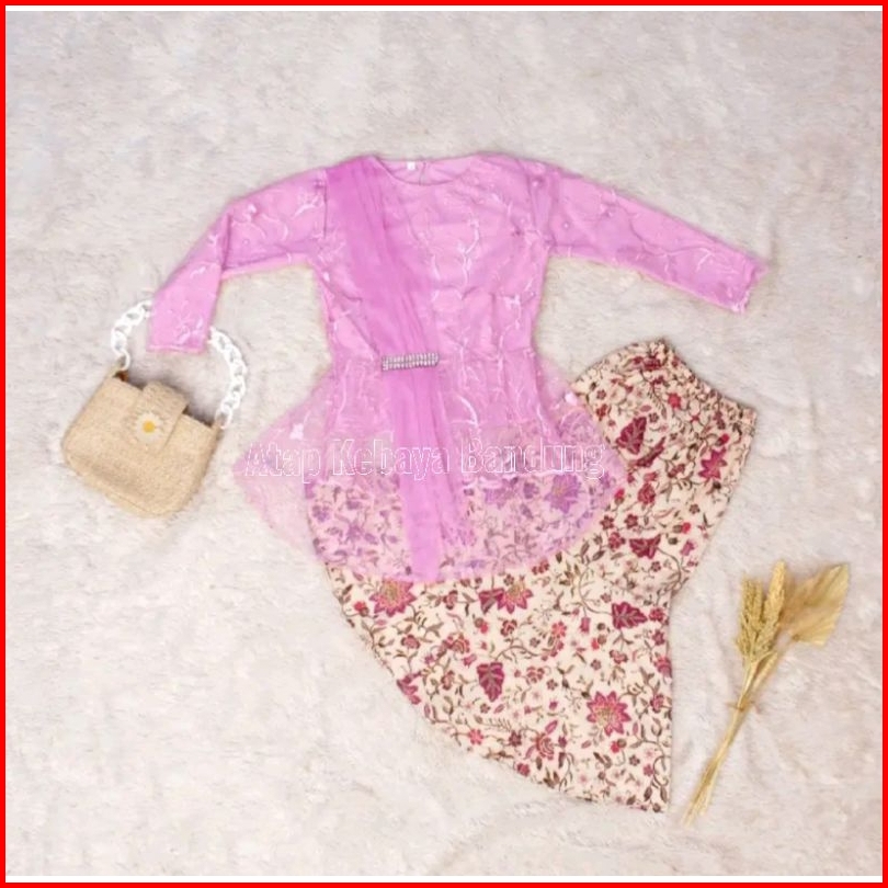 Akb1 Setelan Kebaya Anak Perempuan Model Selendang Rok Duyung Fashion Modern Cocok Untuk Umur 3-14 Tahun