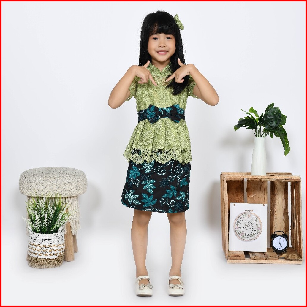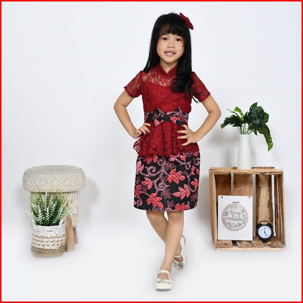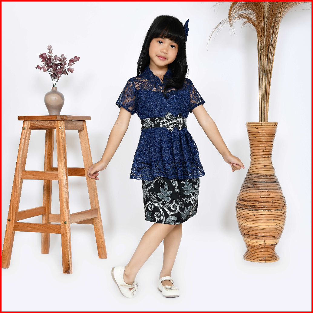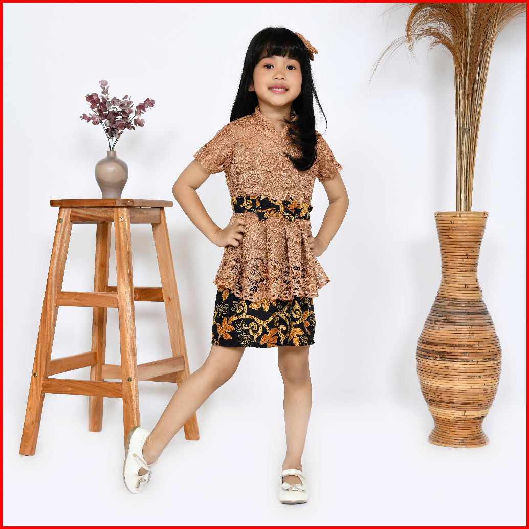 Setelan Kebaya Anak Brukat Batik Modern Ruru Kid Kebaya Kutu Baru Anak Pesta Kondangan