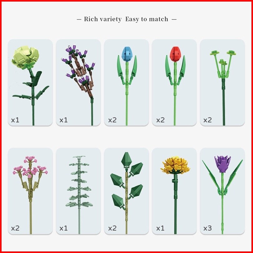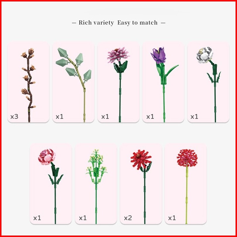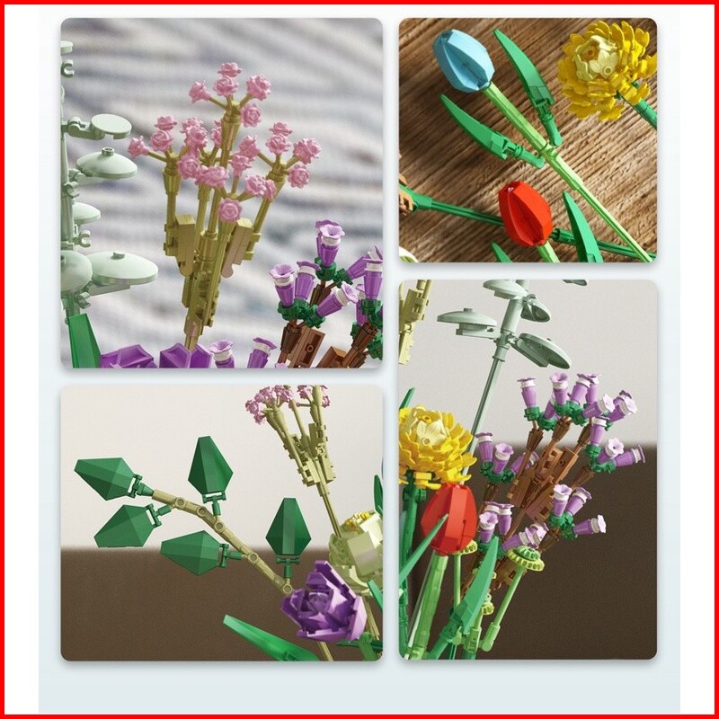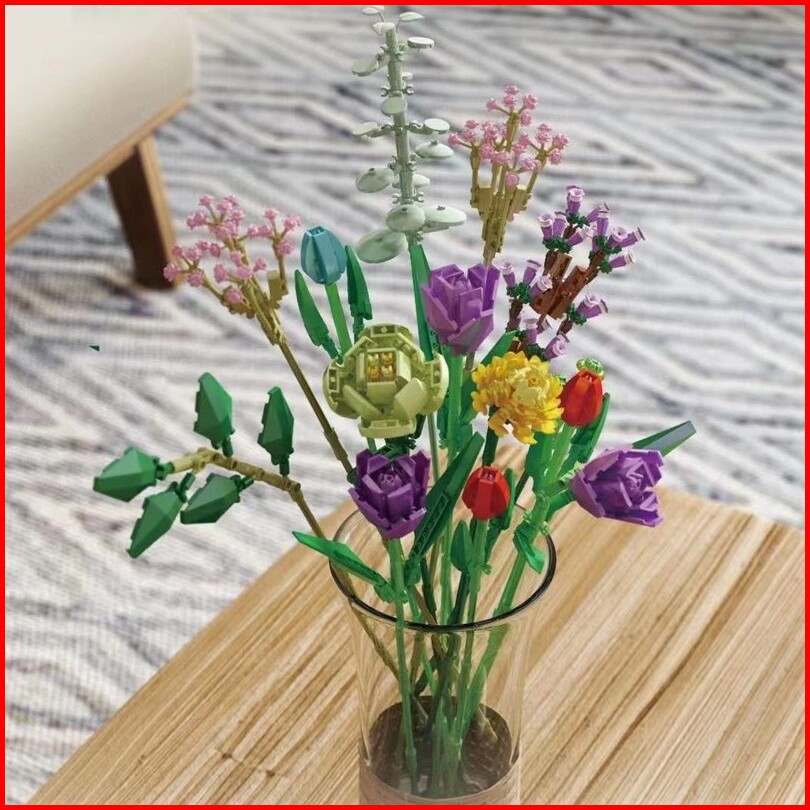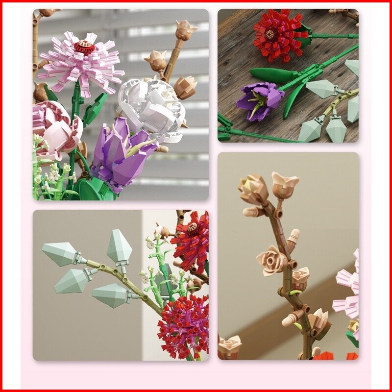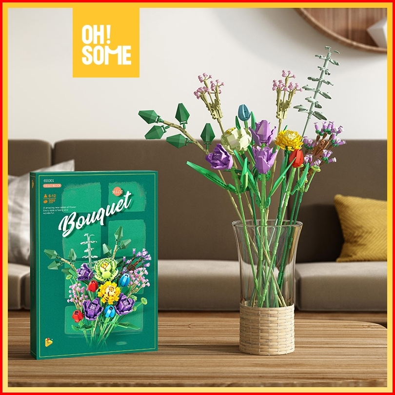 Ohsome -panluosi Building Block Bouquet Flower Block Toys Bunga-bunga Brick Plant Collection Flower Bouquet Of Love Hias