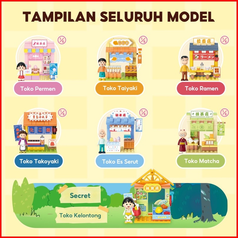 Ohsome Wekki Brick Block Blind Box Gacha Set Koleksi Figure Chibi Maruko Chan Seri Holiday Japanese Food Stand 1 7 - Pro