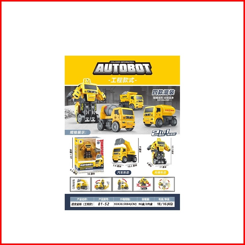 Ohsome - Xinglexuan Mainan Mobil Transformasi 2-in-1 - Dikirim Random - Impact Deformation Engineering Vehicle 2 Pack