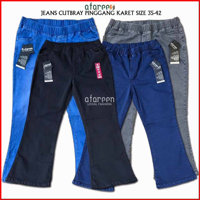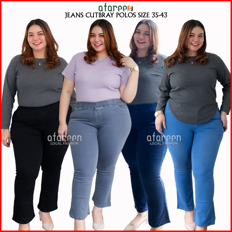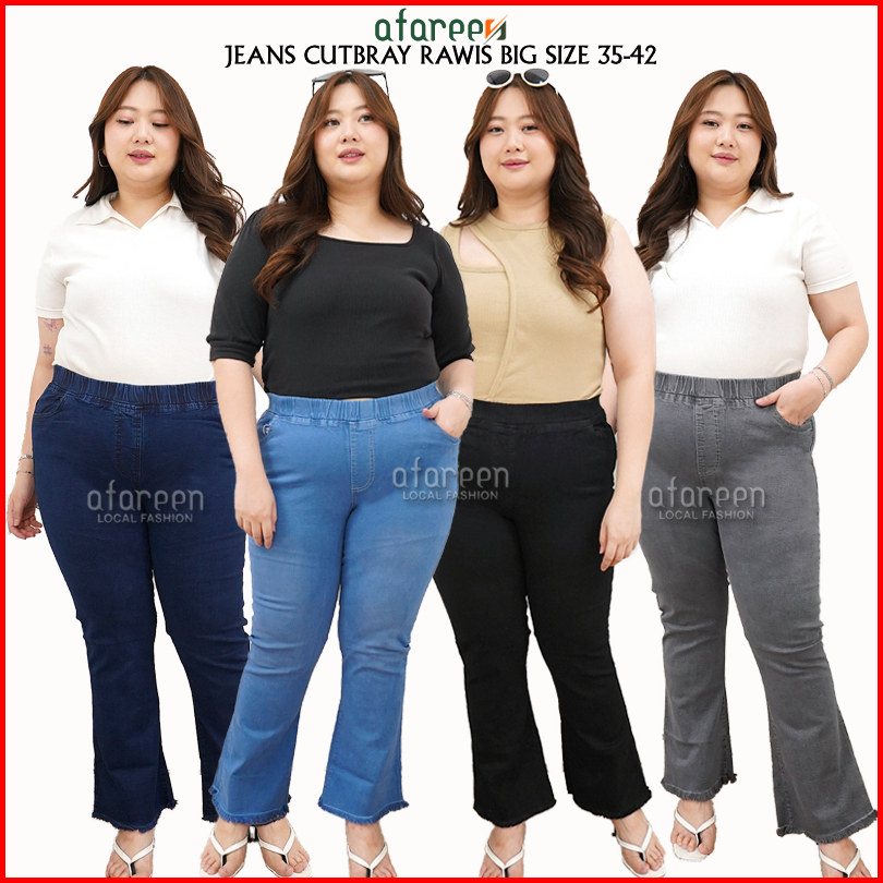 Afareen - Jeans Cutbray Polos Big Size Celana Jeans Cutbray Wanita Jumbo Size 35-42