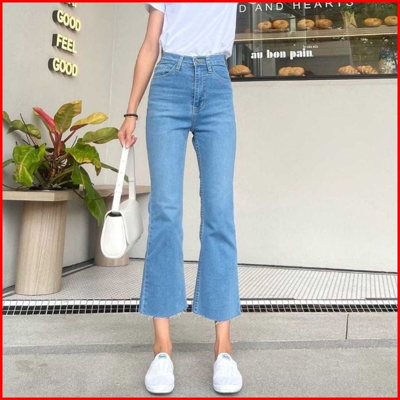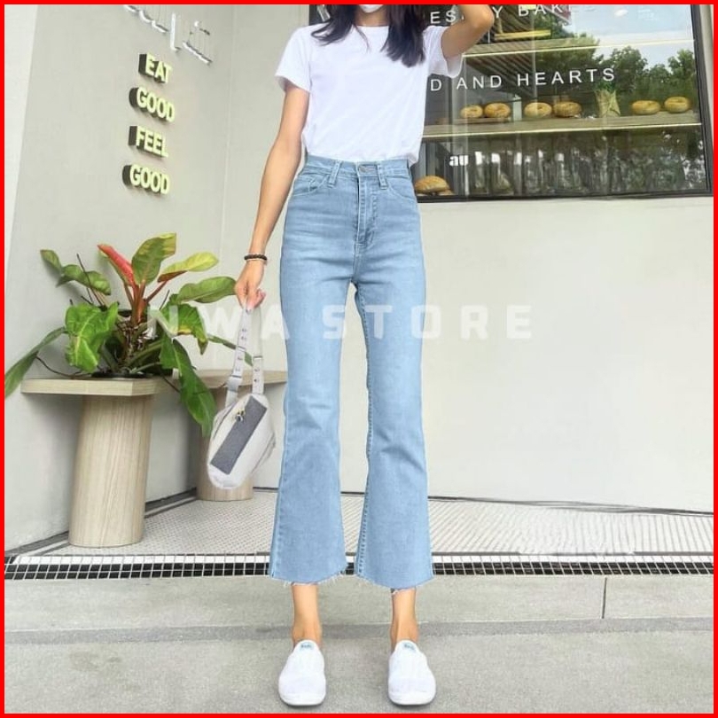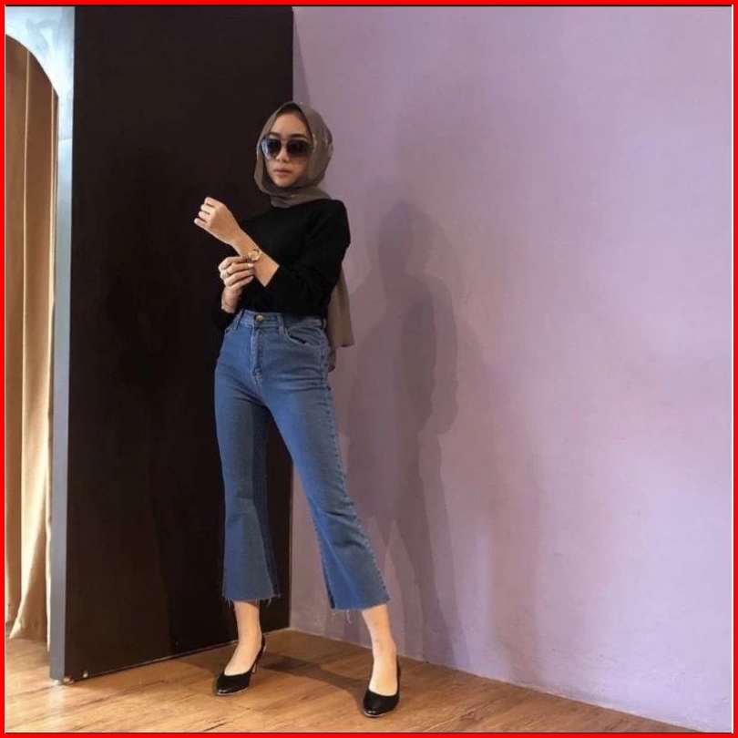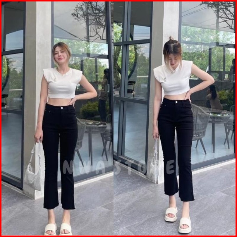 Genzkuy - Celana Highwaist Jeans Cutbray Daniella 7 9 Black Denim - Celana Cutbray Wanita Cutting - Celana Jeans Cutbray