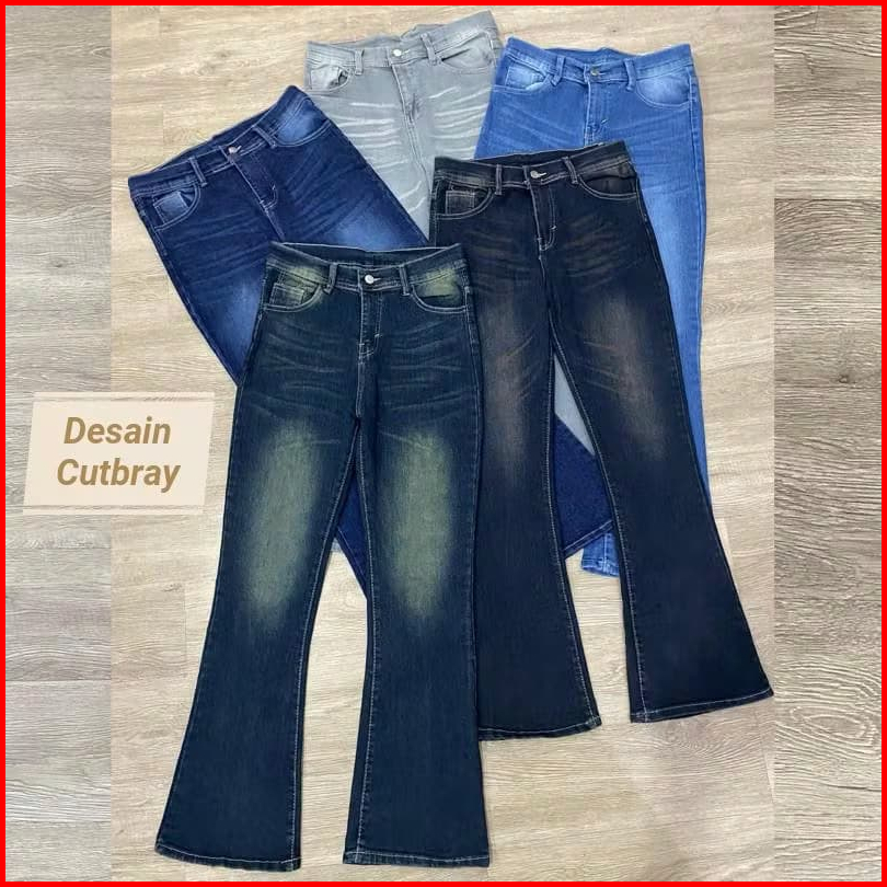Cutbray Jeans Wanita - Higwaist Celana Panjang Soft Jeans Strech Jumbo 27-38 Cutbray Rawis Premium Quality
