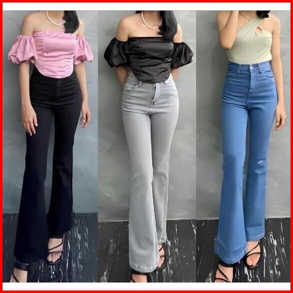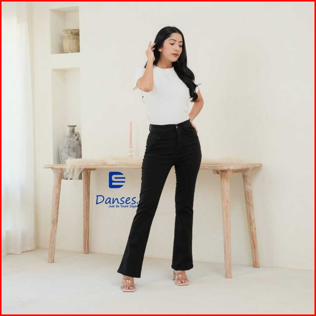 Danses. Just Be Youre Style - Celana Jeans Cutbray Wanita Highwaist Flared Streacht