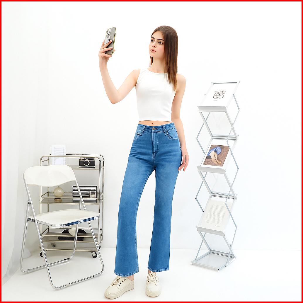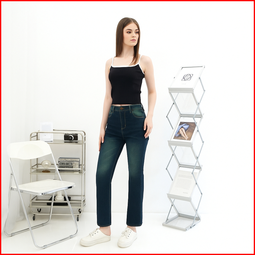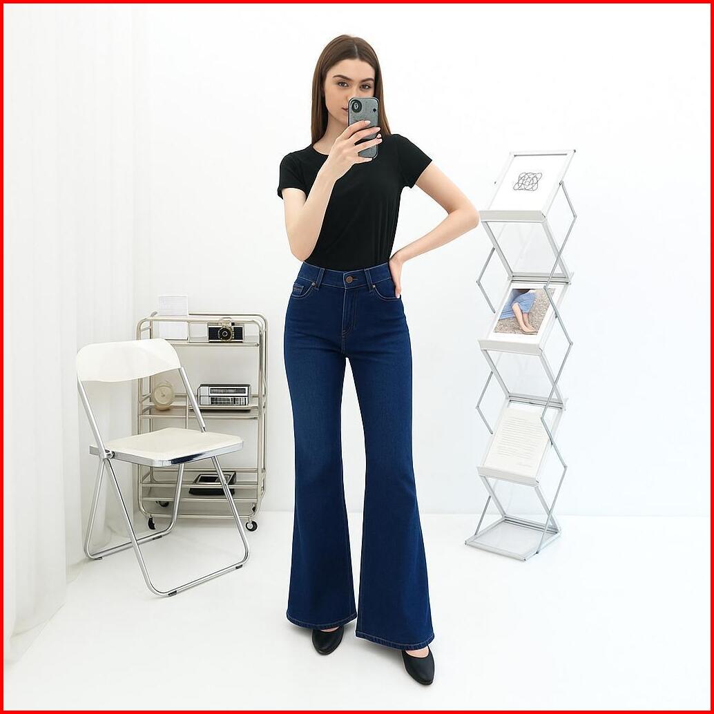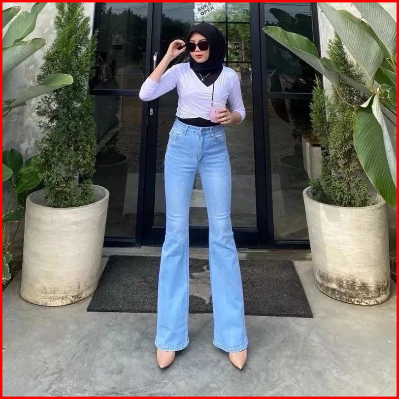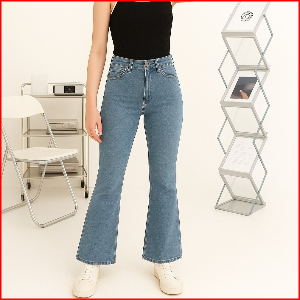Highwaist Cutbray Jeans Wanita - Celana Panjang Denim Stretch Slimfit Kekinian Size 27-34-34