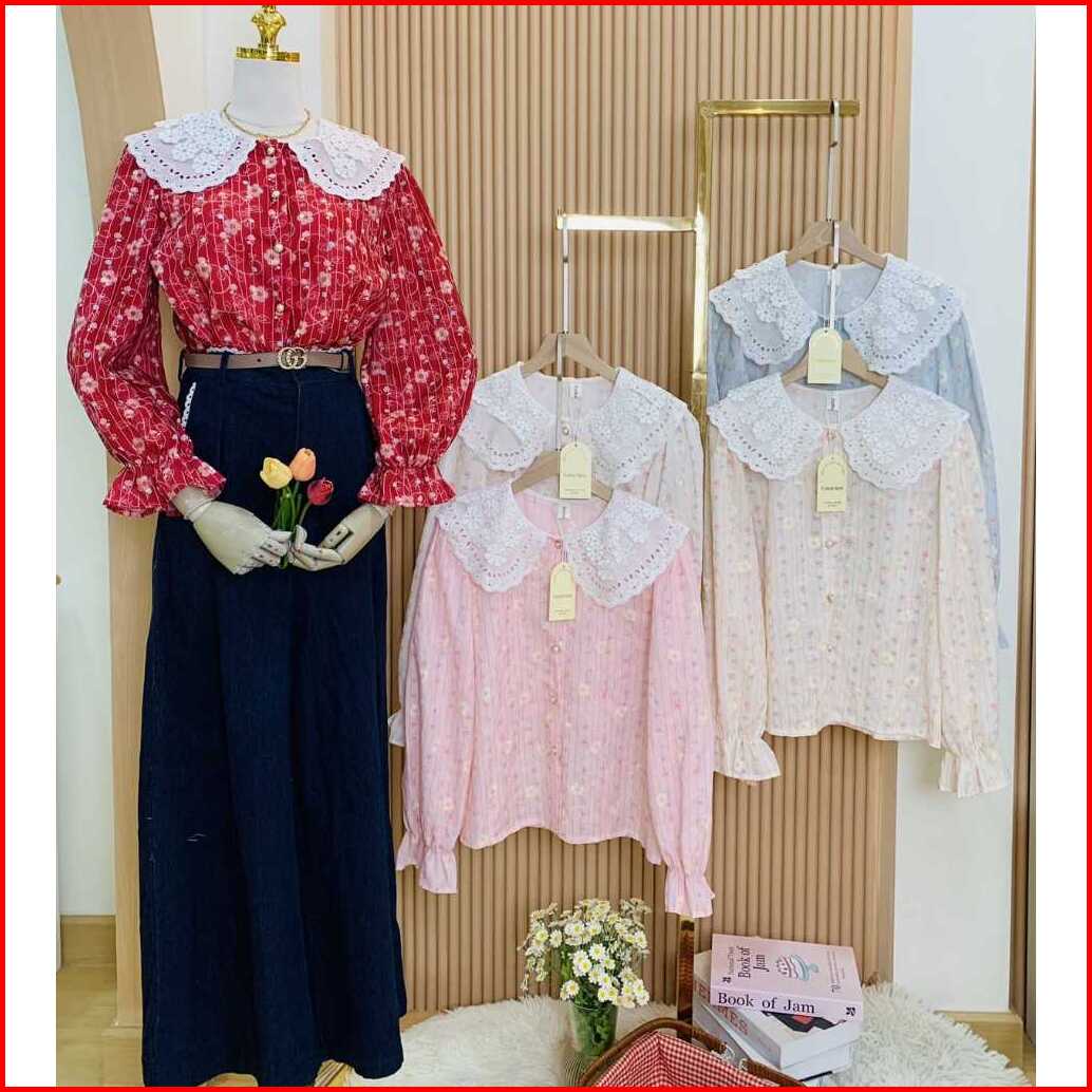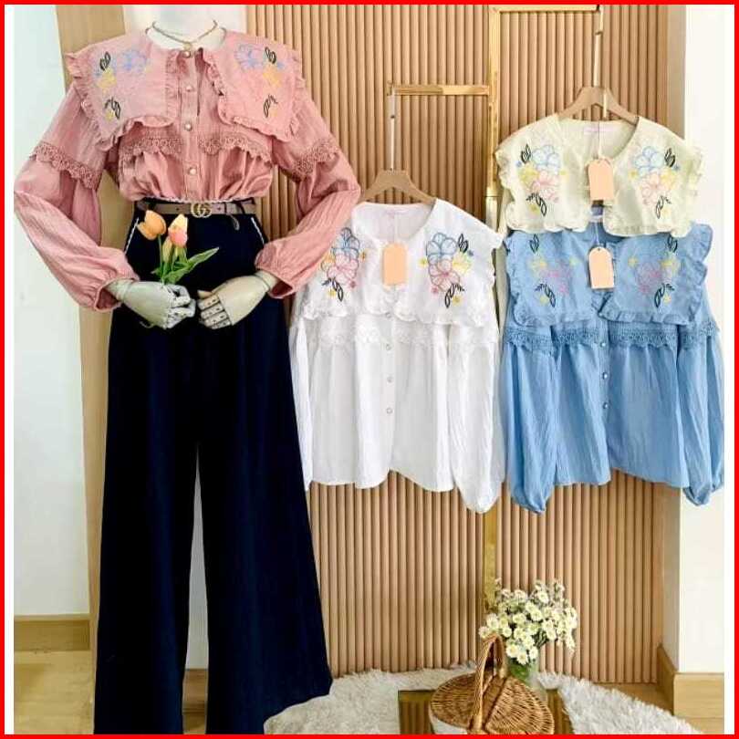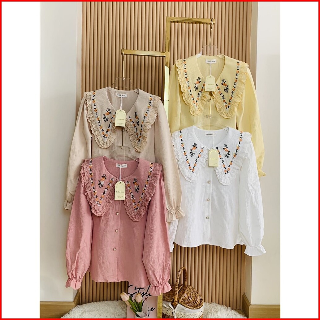 Racunimpor Brand Ploylada Ann Shop Cotton Store Kemeja Kerah Sailor Renda Lengan Panjang Bkk Atasan Bordir Kerah Korean