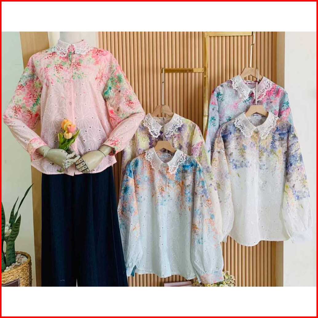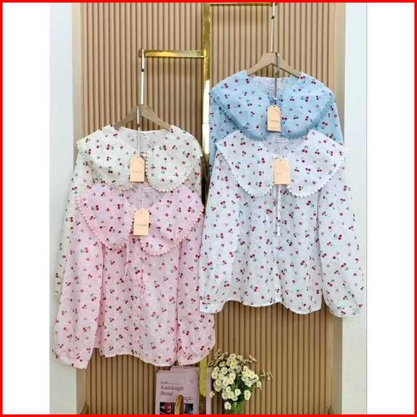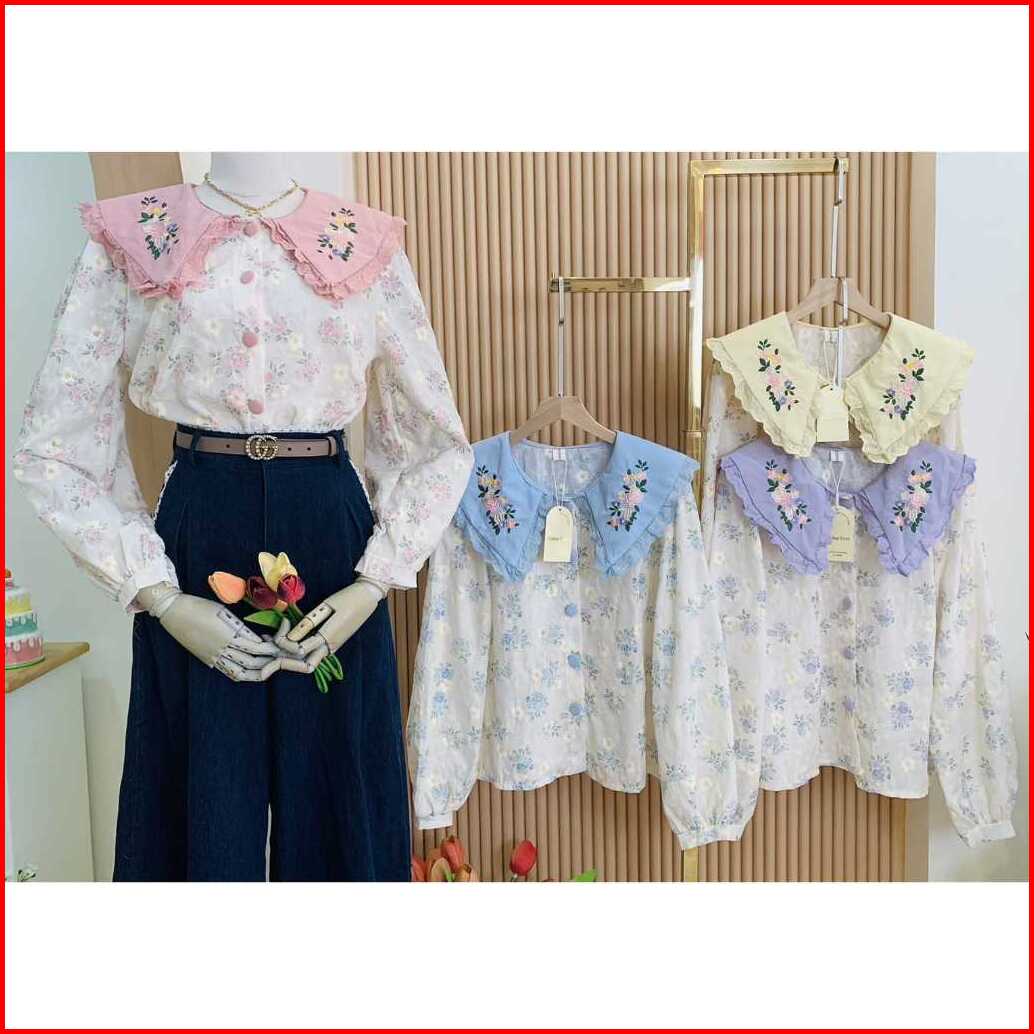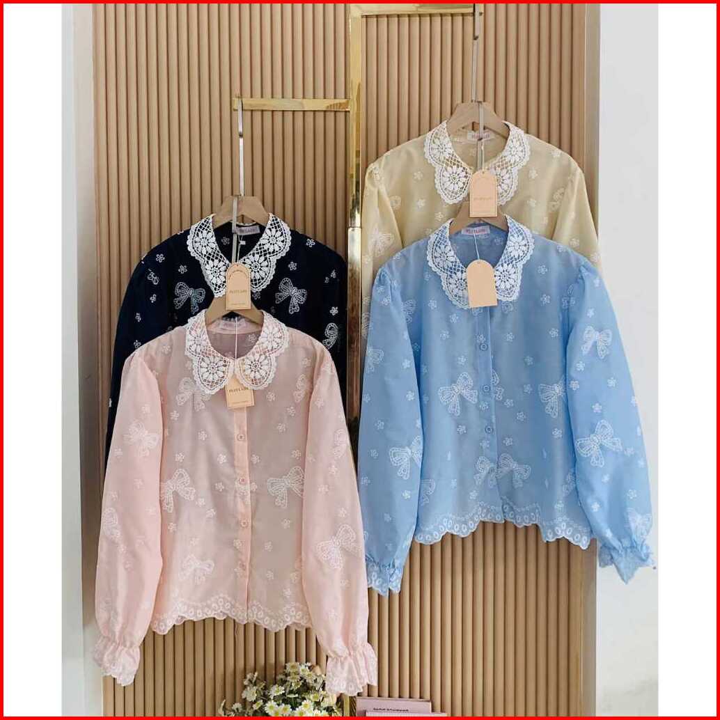 Racunimpor Brand Ploylada Ann Shop Cotton Store Kemeja Kerah Sailor Renda Lengan Panjang Bkk Atasan Bordir Kerah Korean