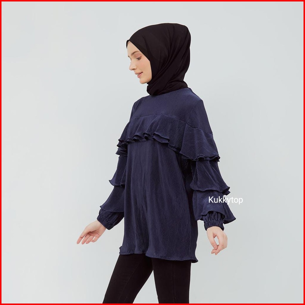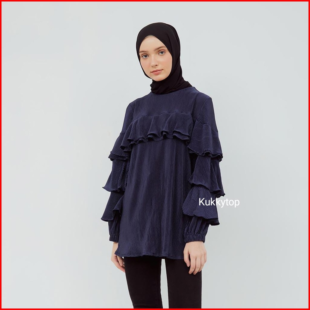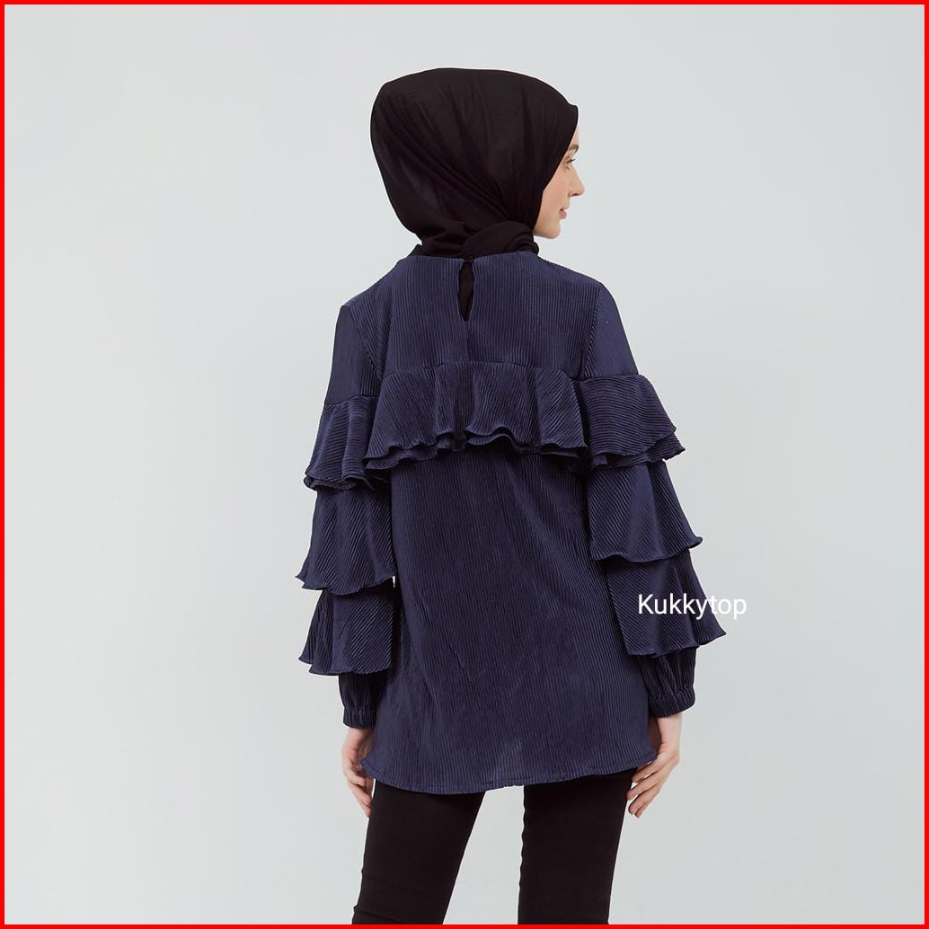 Kukky Top Baju Plisket Fashion Muslim Atasan Ruffle Wanita Blus Import Bangkok Model Korean Style 12372