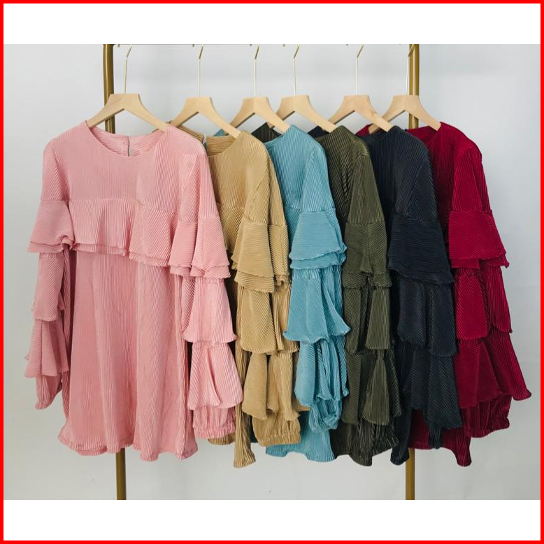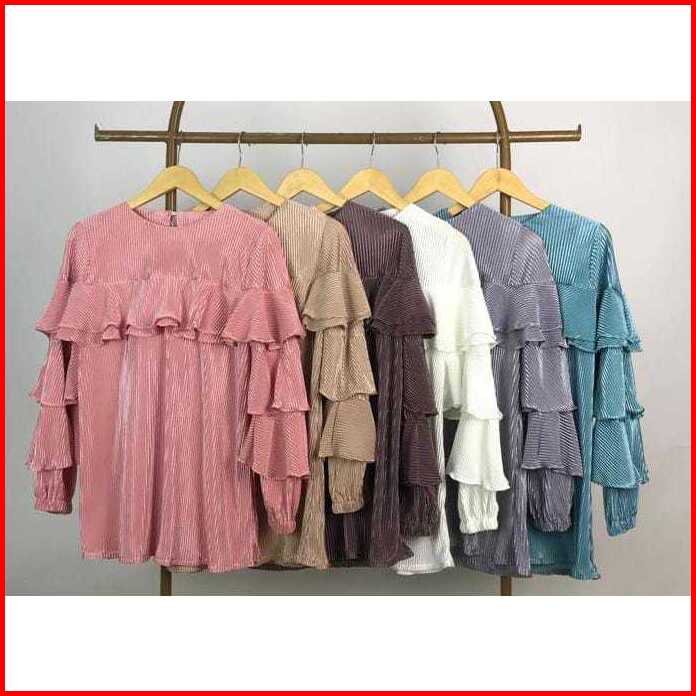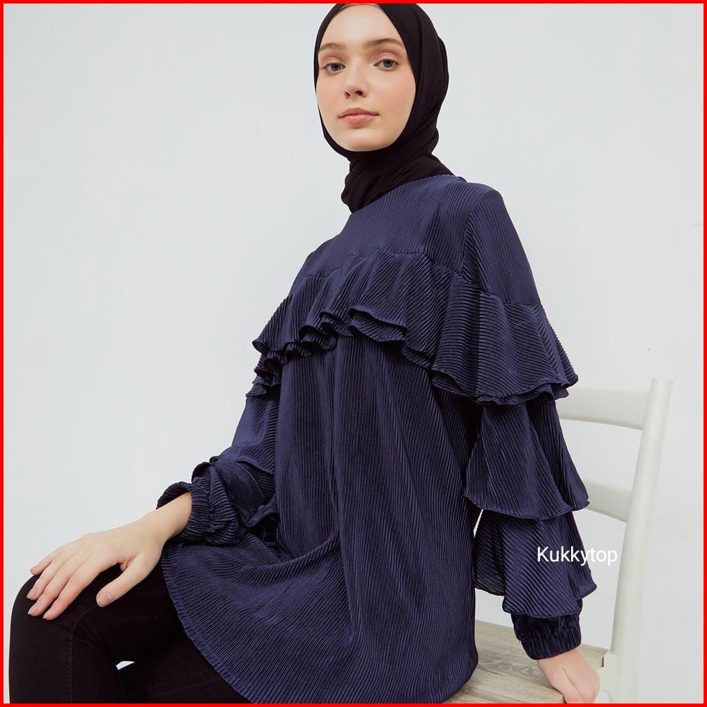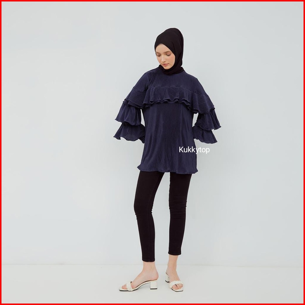 Kukky Top Baju Plisket Fashion Muslim Atasan Ruffle Wanita Blus Import Bangkok Model Korean Style 12372