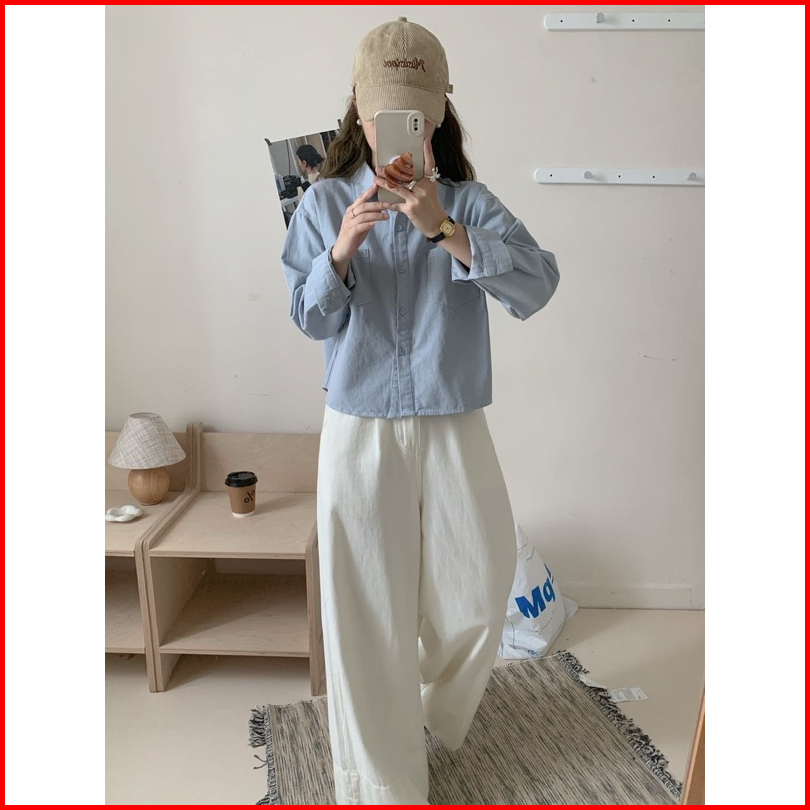 Kemeja Wanwan 70319 Kemeja Kantong 2 Crop Soft Jeans Bangkok Wan70319