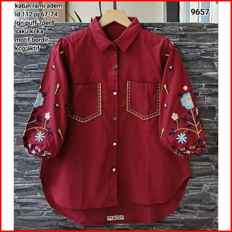 9657 Blouse Kemeja Lgn 7per8 Bordir