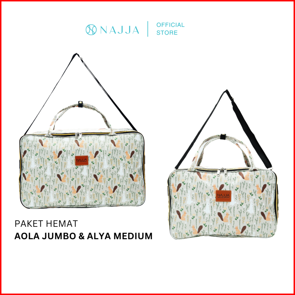 Najja Paket Hemat 2pcs - Tas Travelling Bundling Jumbo Medium Anti Air - Mom Edition - Bisa Jinjing Slempang I Garansi G