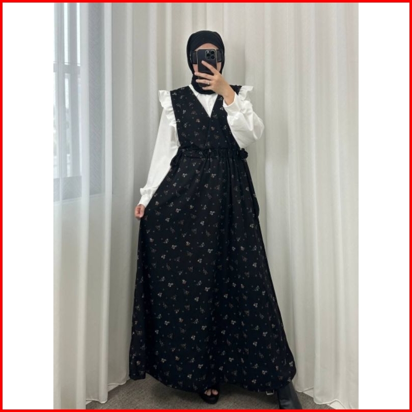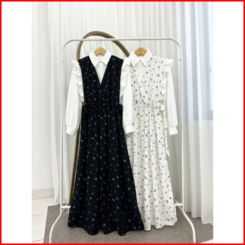 Alona Overall Dress 2 In 1 Serut V-neck Inner Dan Outer Terpisah